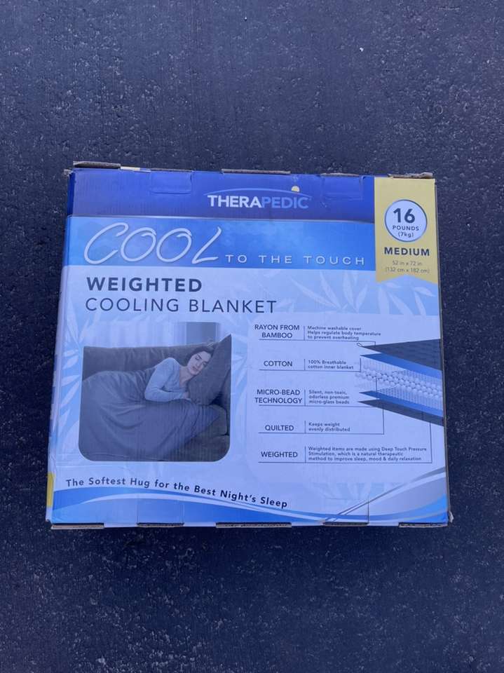 Experience increased comfort at night with the Therapedic Weighted Cooling Blanket. It delivers the calming, soothing comfort of a weighted blanket while staying cooling to help you rest and relax comfortably. Glass pellets add weight to create a calming and relaxing embrace for a better sleep experience Cooling for a deeper sleep Rayon made from bamboo cover Removable cover is machine washable Weighted insert is spot clean only Choose the weighted blanket that is about 10% of your body. Medium blanket measures 52 W x 72 L; weighs 16 lb.