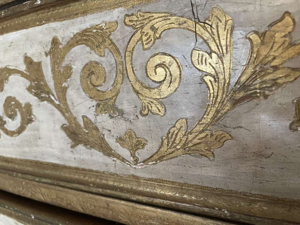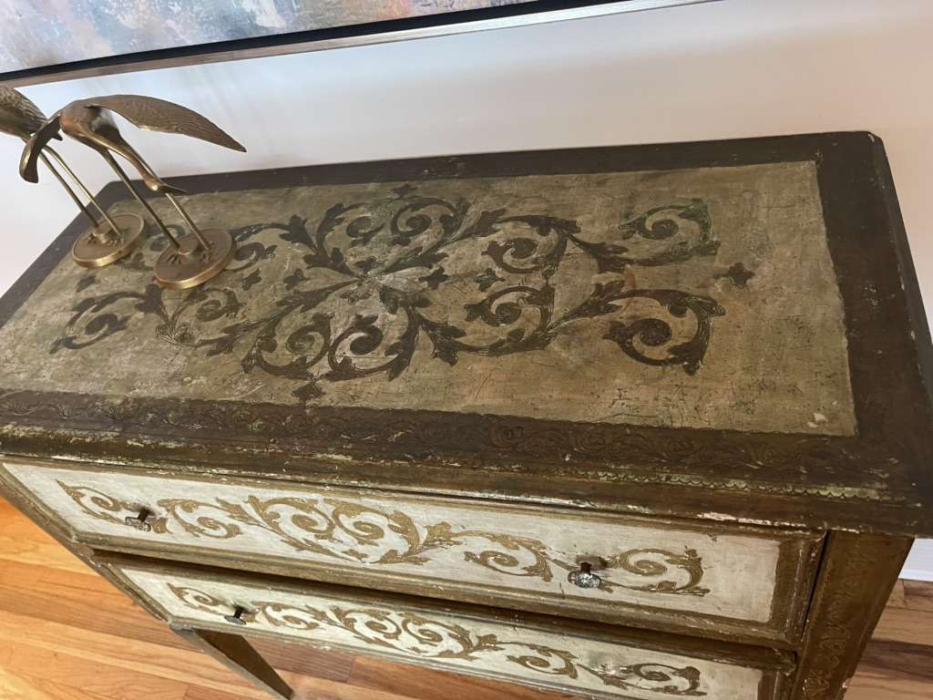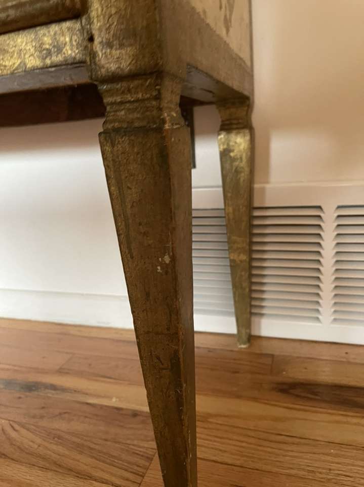 This is a very nice RARE antique gold gilt Florentine Amalfi side table from Italy, has 2 drawers, the gold gilt patina and hand CARVED LINES are beautiful! Measurements in photos. $750 or best offer!