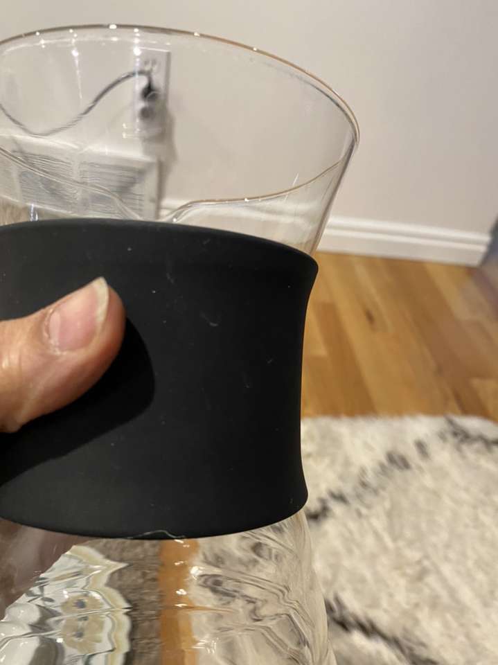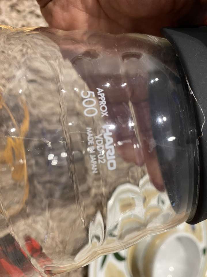 HARIO GLASS COFFEE CARAFE. Carafe has button sleeve on neck