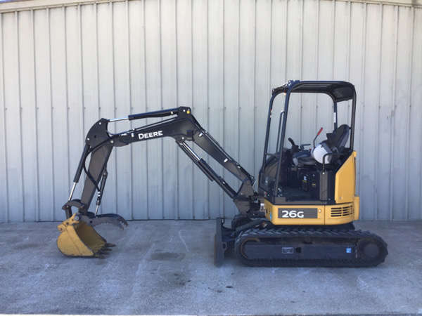 Very nice John Deere 26G mini excavator for rent. Great size for any home or work proejct because it has all the power but not too oversized. Easier to tow and very easy to operate