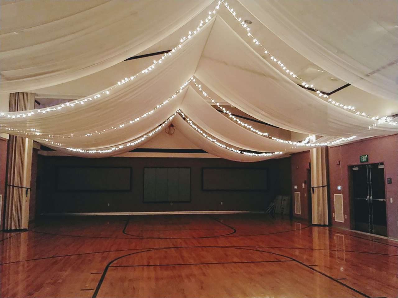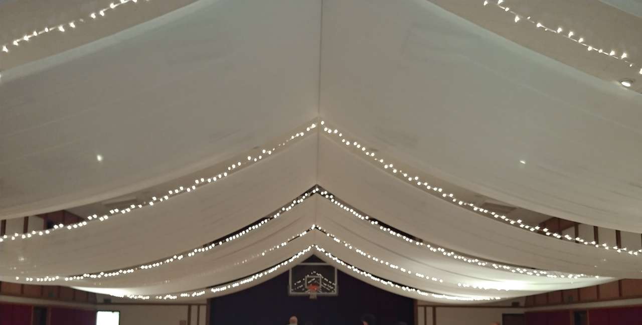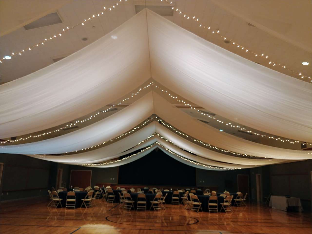 ZelleBeautiful ceiling draping with lights. We set up and take down. Price starts at $550