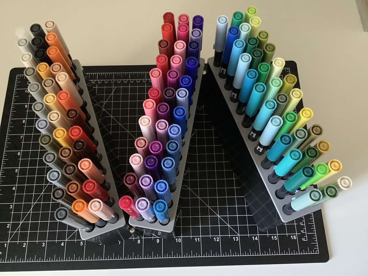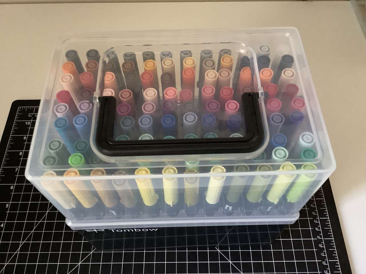 Tombow dual brush pen marker set in storage case. Comes with all 108 colors which is their complete color line. Used to create a color swatch card but otherwise unused. The complete line of colors in the storage case retails for $325.