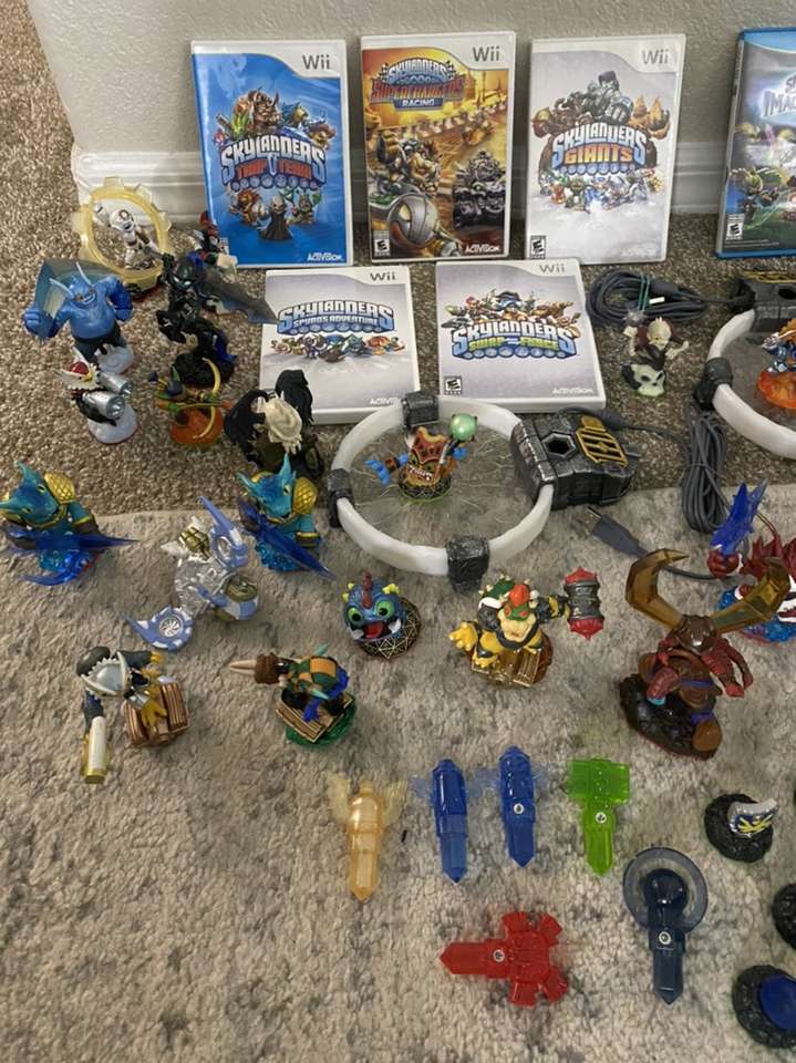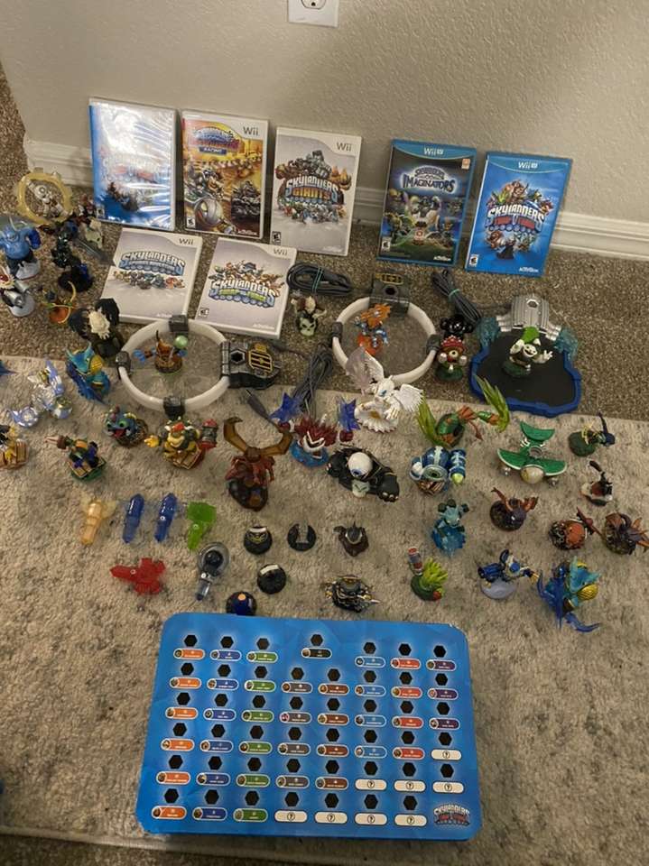Ad price $100: 3 skylanders games, pad, and 10 figures (not all figures can be chosen from, please text with any questions)