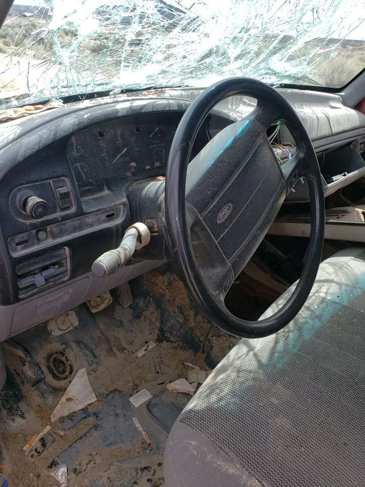 300 6cyl unknown trans mission is gone so is seat. Was a 5 speed. 2wd long bed Whats gone!!! Engine Trans Seat Wheels and tires