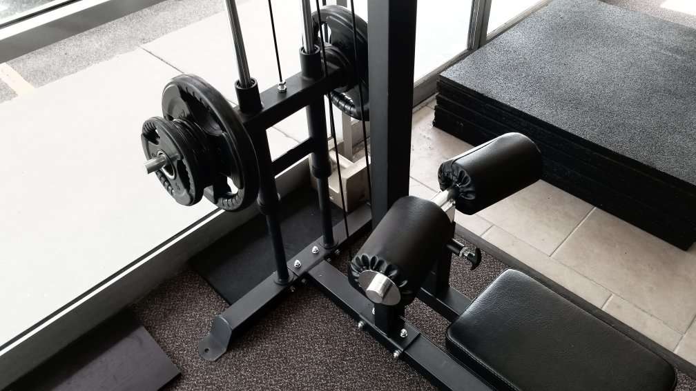 This stout machine has upgraded steel construction, superior seat and leg pads, solid steel guiderods and quality smooth bushing sleeves. Add bearing sleeves for just $30 more. Comes with commercial Lat Pulldown Bar and Short Straight Cable attachments. Universal solid loading posts accept both one inch and Olympic plates.