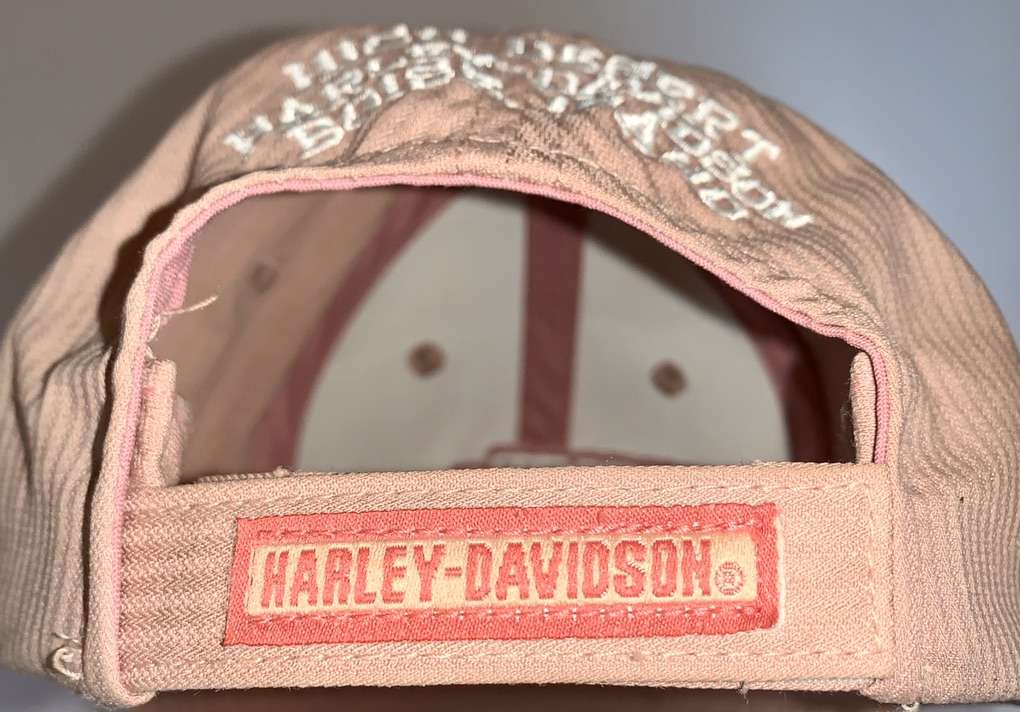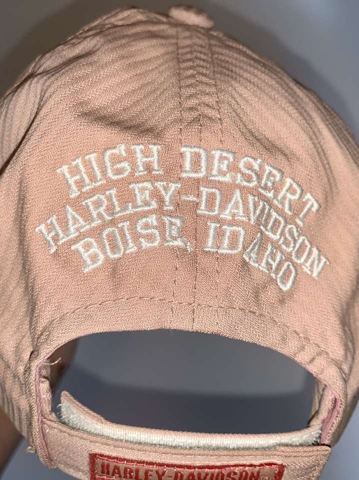 Adjustable Micro-velcro closure, very good condition, embroidered collectable Harley-Davidson baseball style hat in 100% chalk pink cotton, quality construction, officially licensed High Desert embroidered on back. See all pics! clean and near new. Send me a message if you’re interested in purchasing.