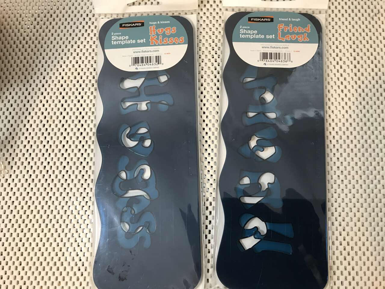 Fiskars 2 piece Shape Template Set, Hard Plastic, use with Ultra Shapexpress, pick 1 or more from following: Grow Wonder, Play Giggle, Love XOXO, Baby Sweetie, Hugs Kisses, Friend Laugh. Templates are 11" x 4", pics #28-30, $10.00 for 2 packages