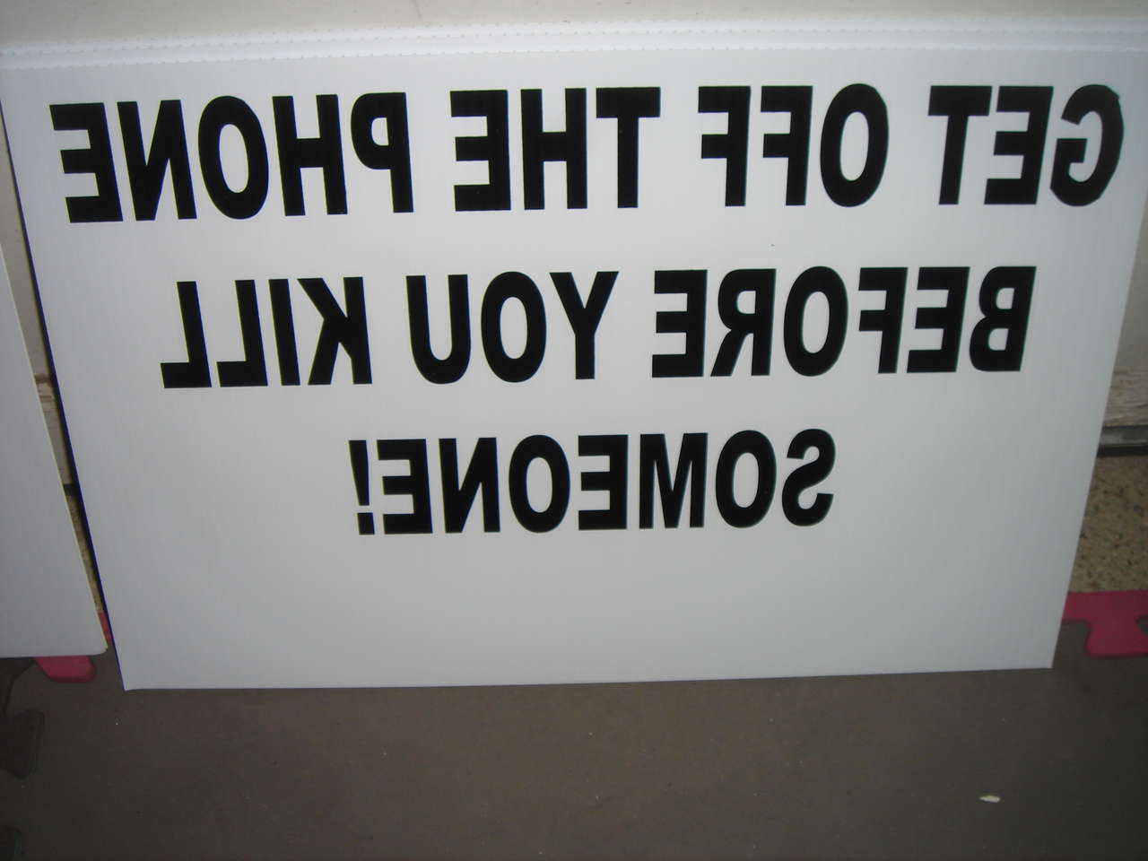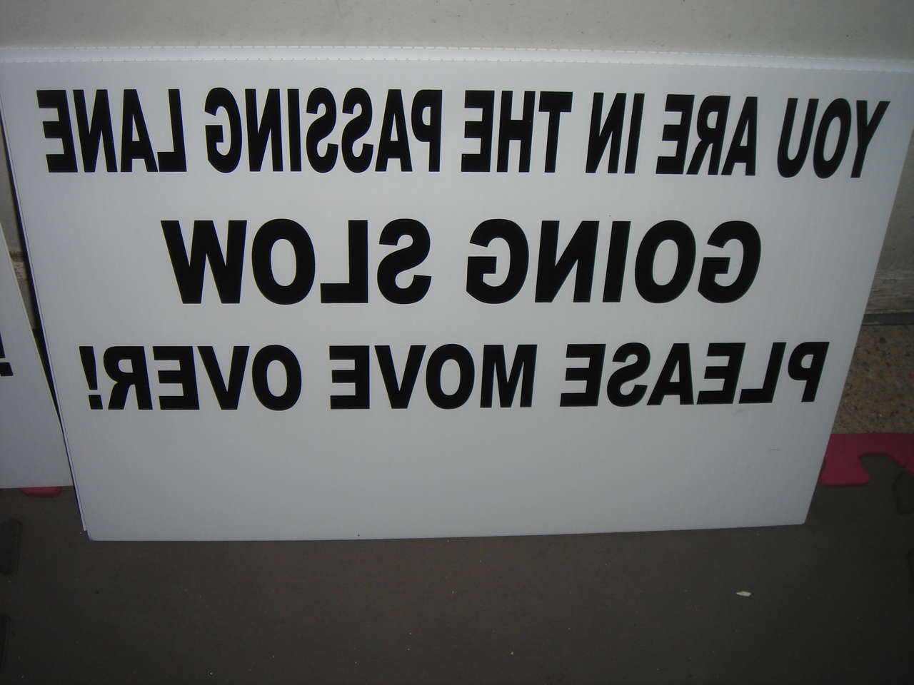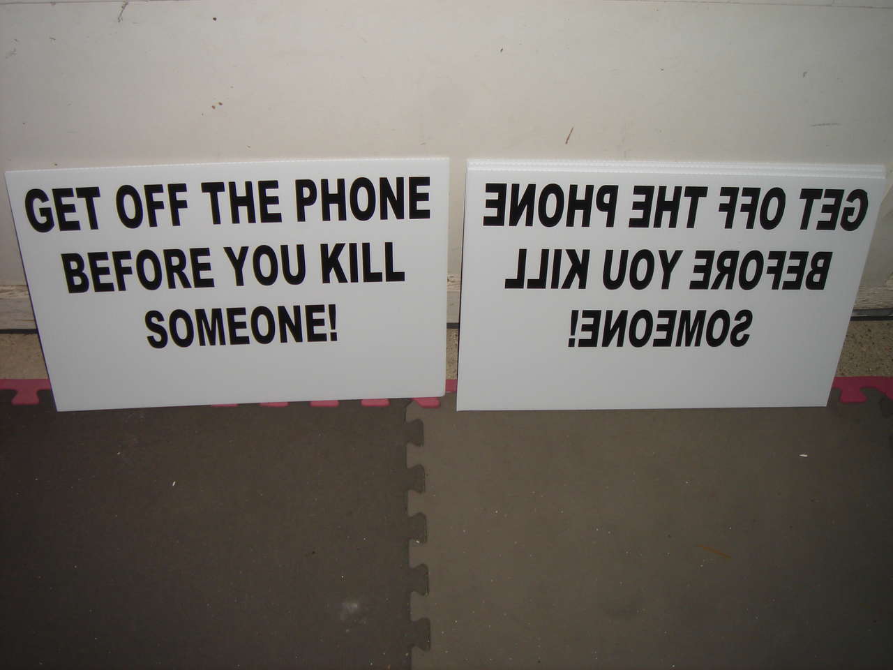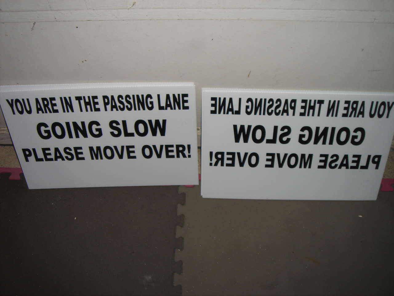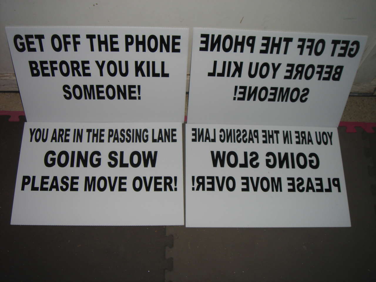 WITH THESE EDUCATIONAL VEHICLE SIGNS that fit in your windshield dash area and can be read by the car in front of you looking in thier rear view mirror