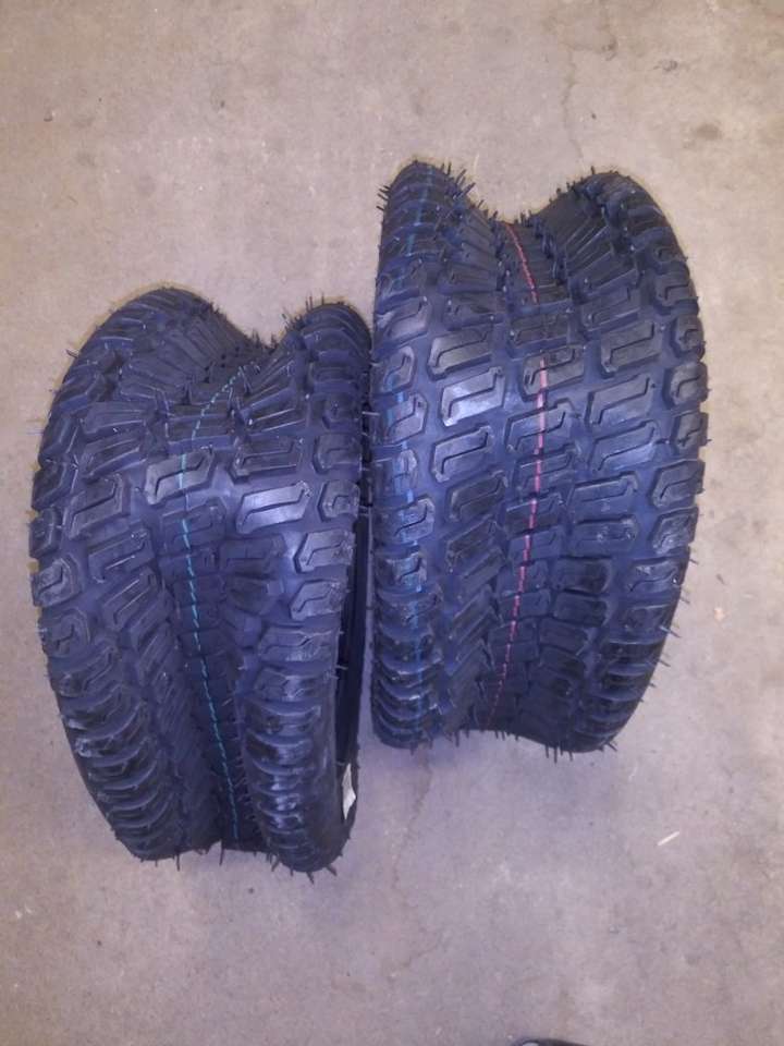 Brand new set of Turf Master lawn tractor tires made by Carlisle. Size is 15 by 6.5 - 8. These are 4 ply tire.