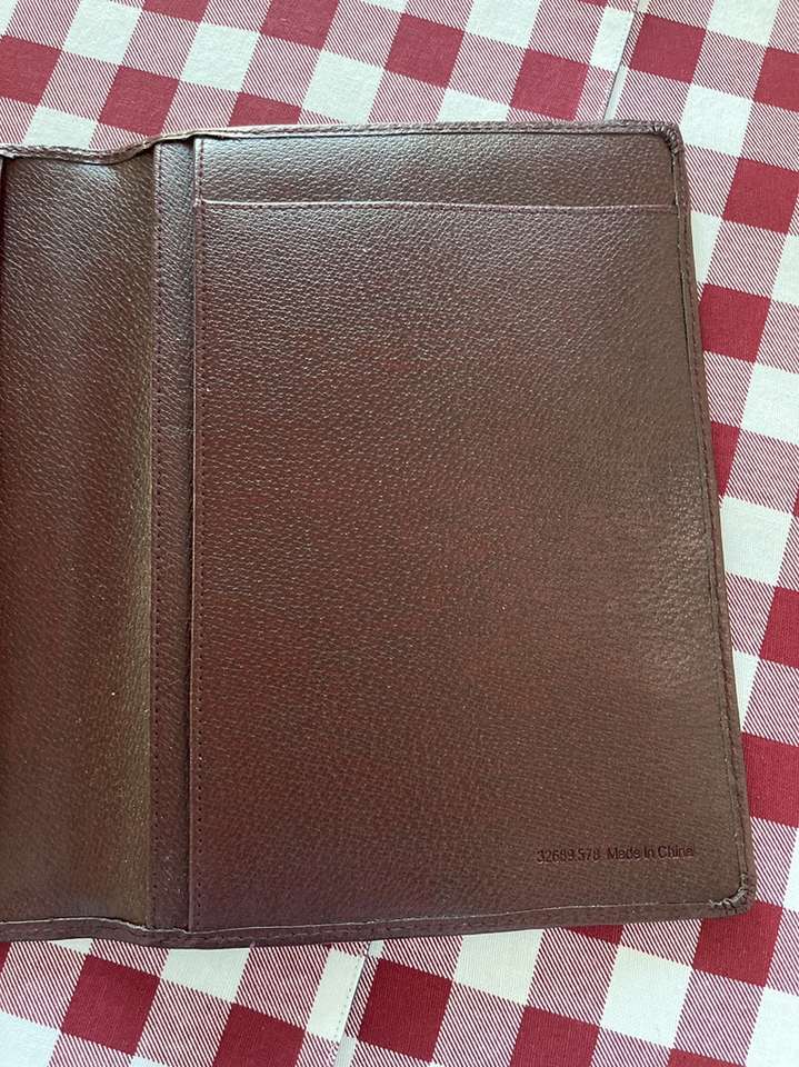 This is a small leather portfolio. It has a pen loop, 5 slots for credit cards, & 6 pockets. In excellent condition/new.