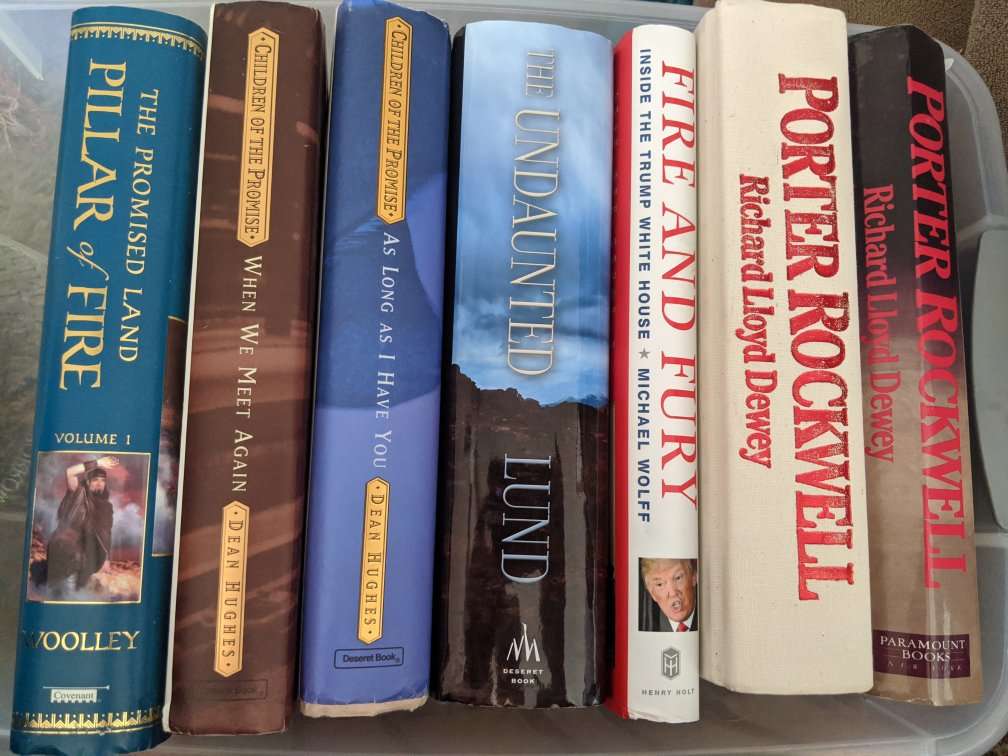 Can meet in Provo too. Saints at war. Porter Rockwell. Fire and fury trump. Undaunted. Children of the promise. Pillar of fire. Royal duty. Diana. Da Vinci code. Stephanie Myer.