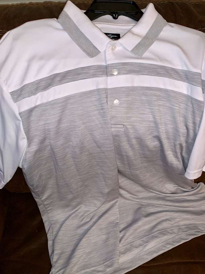 (Made for golf comfort & style) Ben Hogan Performance XL Golf Polo Gray And White. Nice cool shirt for sport and leisure. Message me if you’re interested.