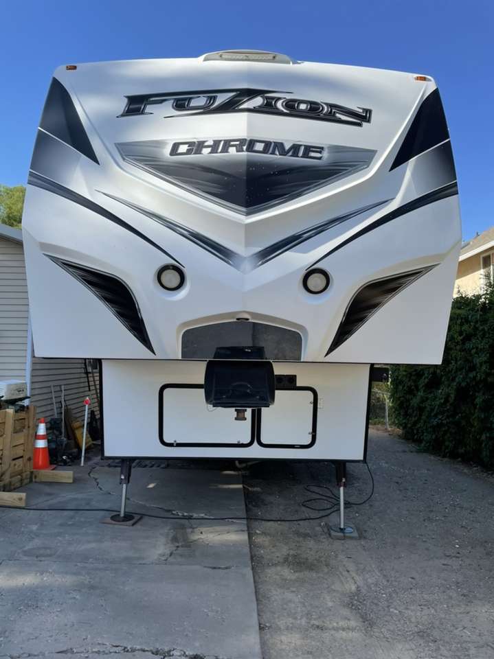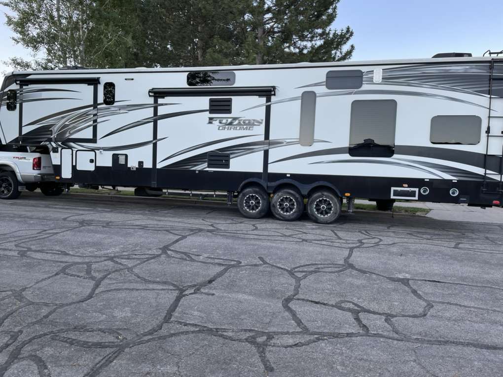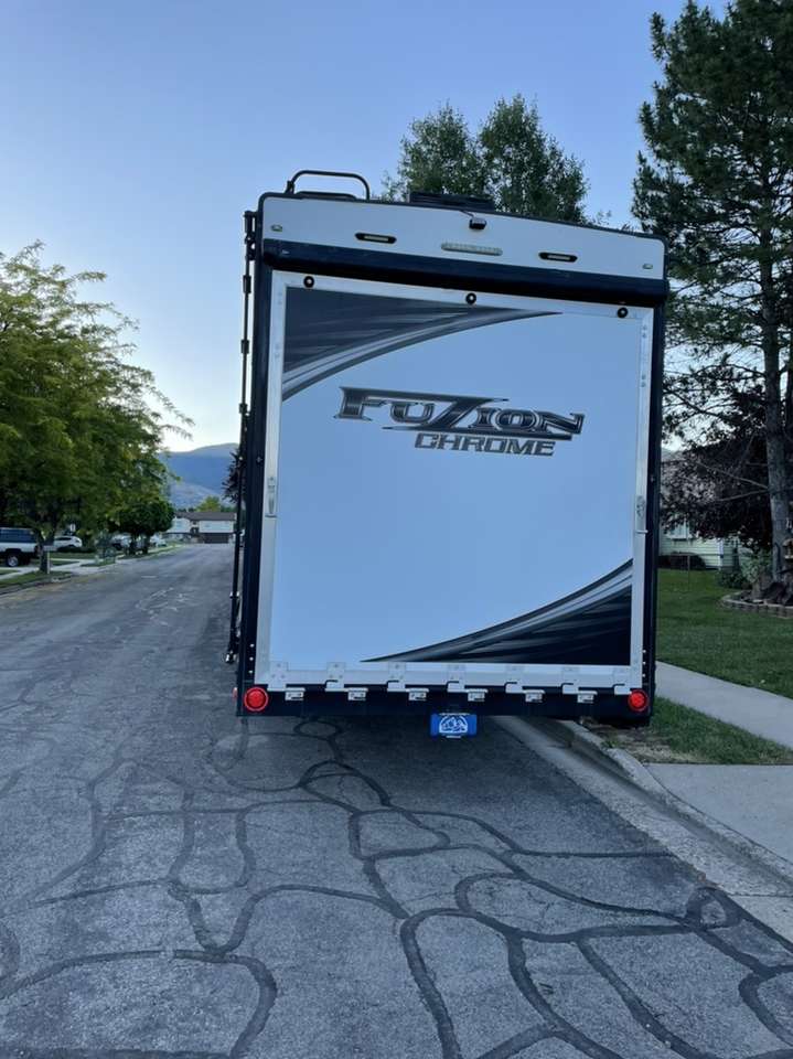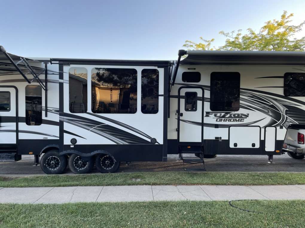 2015 fusion chrome FZ401 model 12 foot garage Slide outs have awnings over them in very good condition $68.000