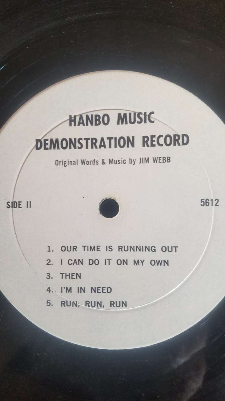 This Demo L.P. vinyl was given to me in 1969 in Hollywood by the Record Company that gave me my first recording contract. Jimmy Webb was not yet famous. This is rare. There may be only a handful in existence. Very good plus condition.