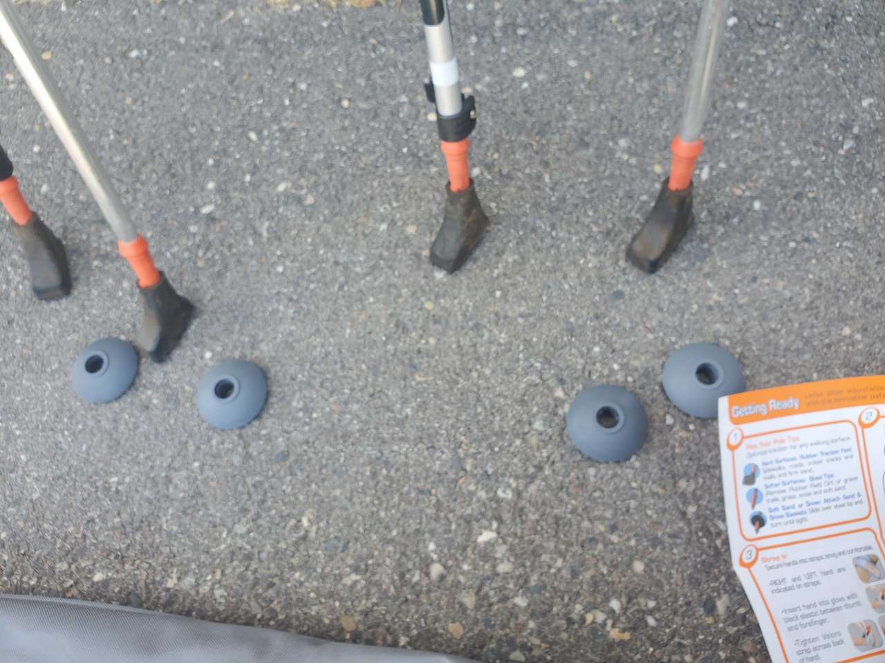 2 sets on the left come with the hard surface rubber traction feet on it now, but take them off for soft surface and just use pointy steel tip, or put on the snow baskets for sand and snow! They adjust a few inches taller and a few inches short than the Leki sized below. Set comes with the 2 pairs, carry case, change out feet/baskets, instructions etc. They are Boomyah Tone N Trek Nordic Total body fitness walking poles. Tones your arms and upper body, burns more calories and saves more energy! whole set of 2 poles and accesories for $80 or 1 set alone for $50