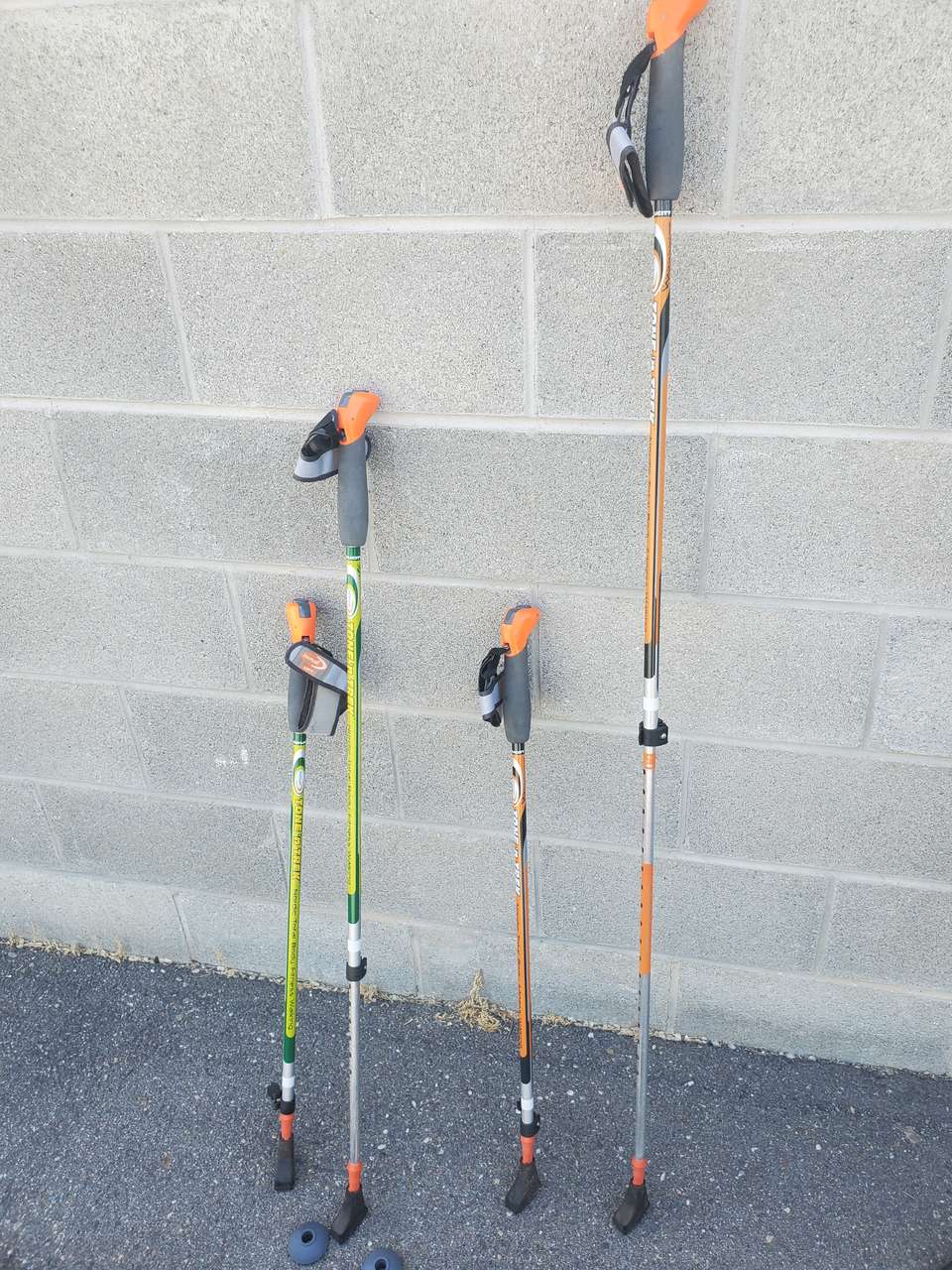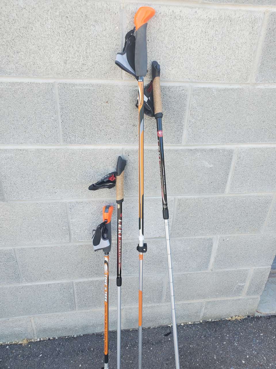 Set on the right is Leki Prestige Titanium, adjusts from 130cm to 100cm. $50