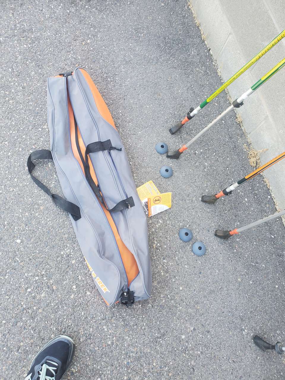 Adjustable hiking poles, great total body work out and stability for hiking! 2 sets can change to snow and sand!