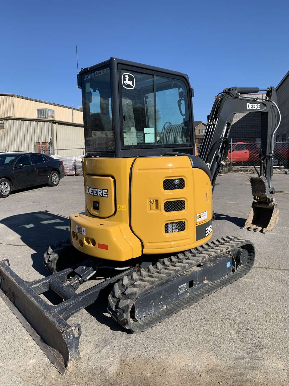 John Deere 35G mini excavator with enclosed cab for rent. This 8,000lbs excavator provides great strength and size for any size project. This machine has heat, AC, thumb for picking up trees/boulders and various bucket sizes.