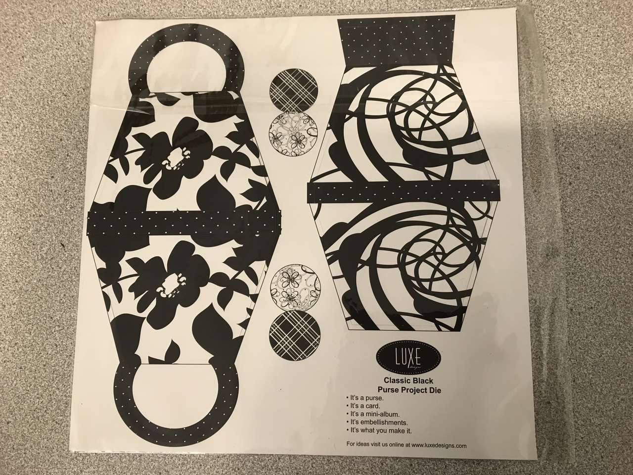 Buy 1 of these items and receive the Luxe Classic Black Purse Project Die Cut (12" x 12", 2 sheets) for free or American Greetings Purse Gift Box lot of 2 free which are ideal for a gift card giving or Peel Off's Gold Purses. You choose.