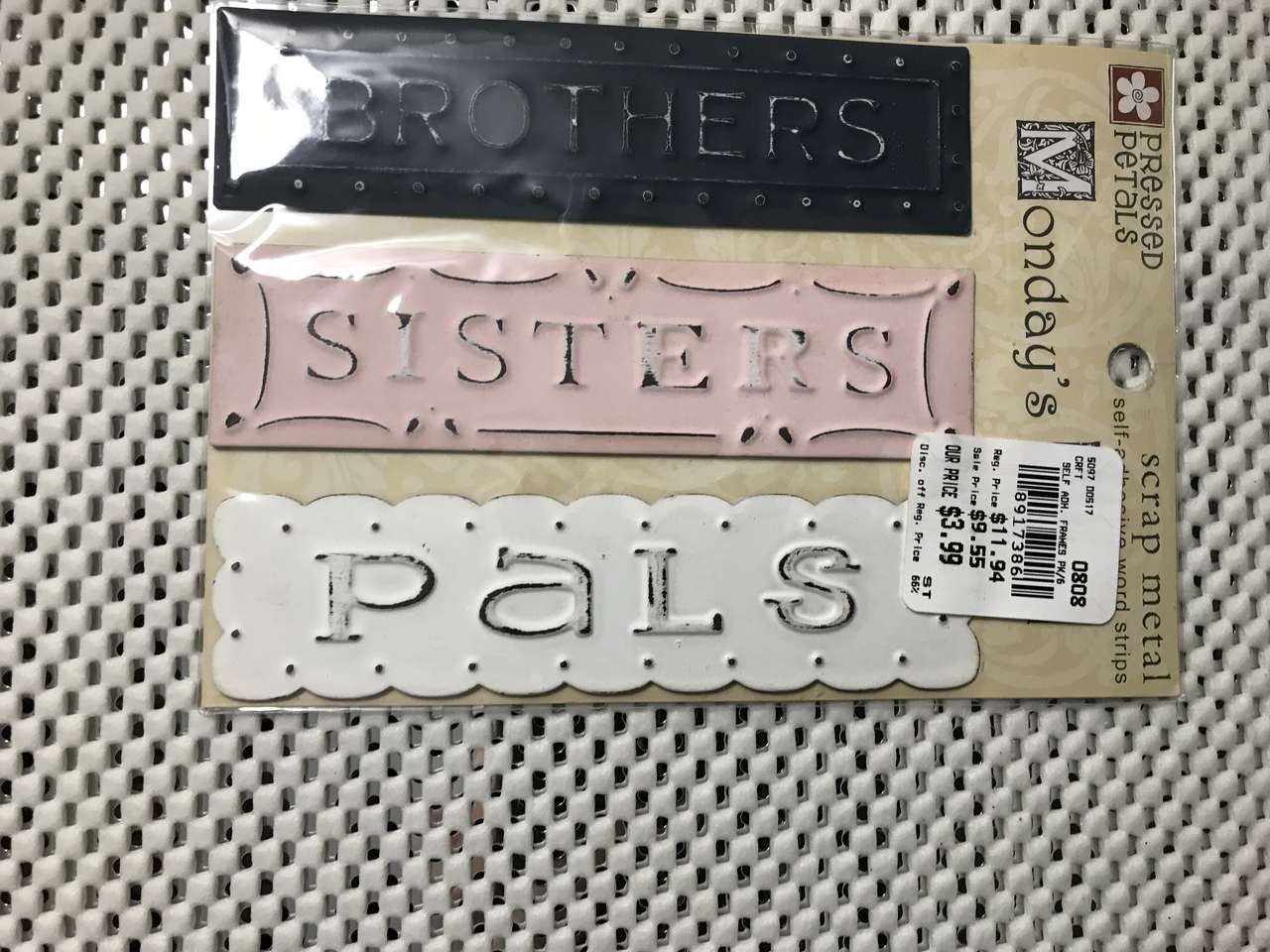 Pressed Petals Monday's Child Metal Word Strips Brothers, Sisters, Pals (6 available), self adhesive, new $5.00