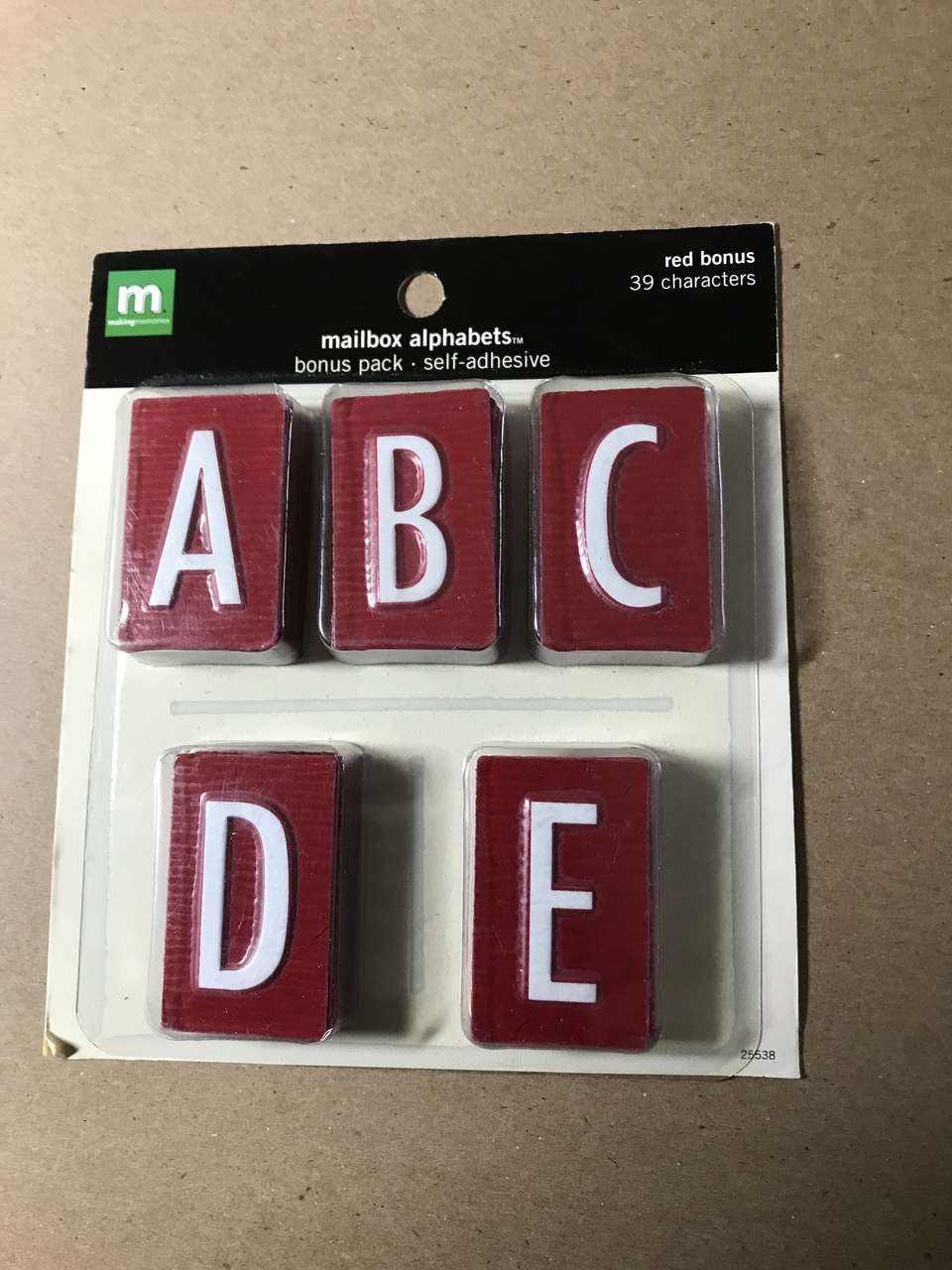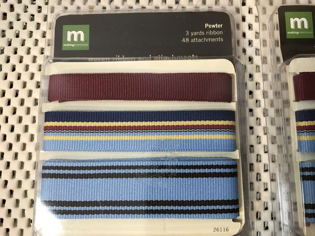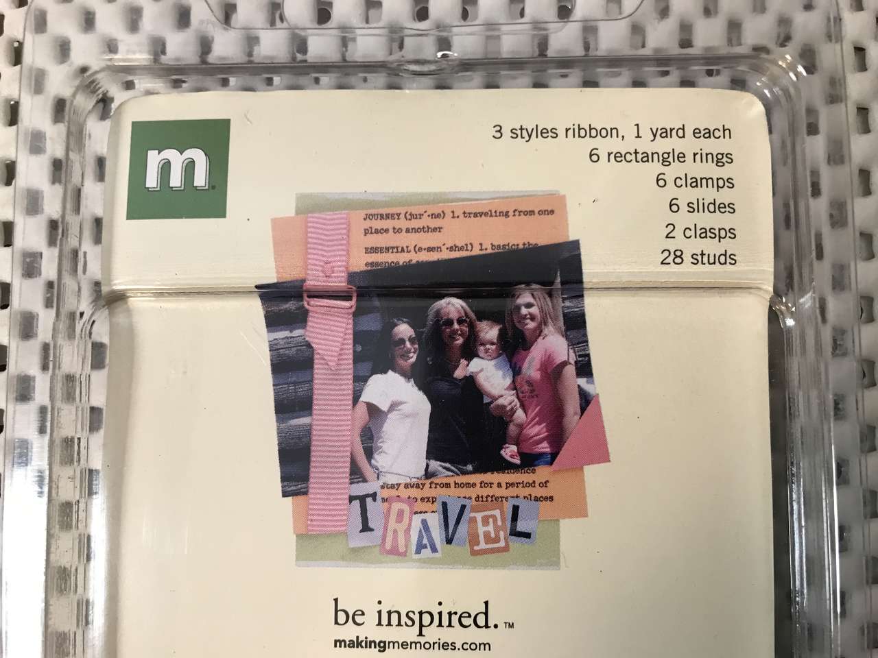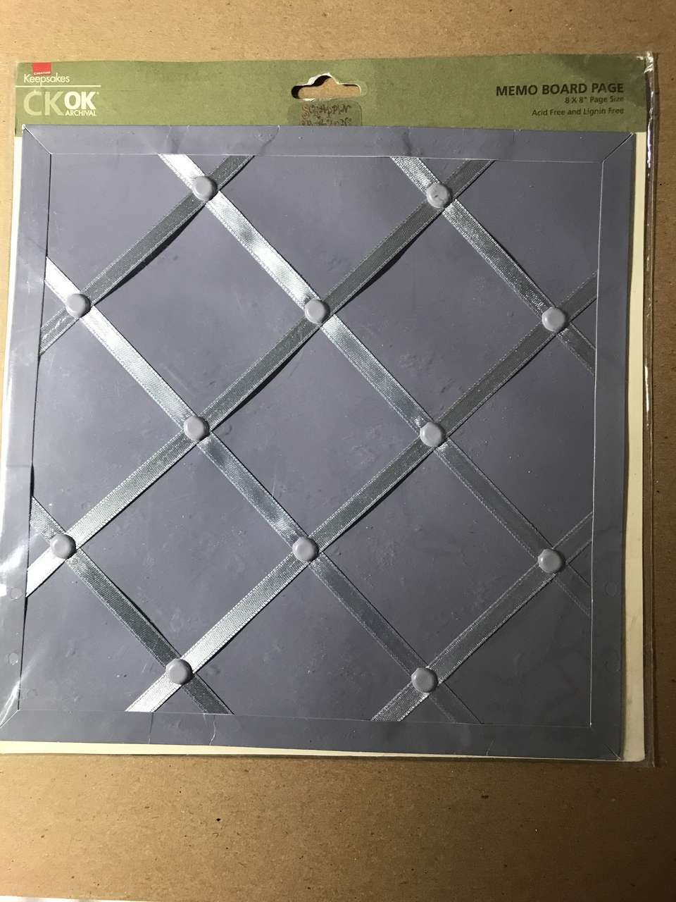 Memo Board Page 8"x8", and Paper Piecing Pattern Just a Little Something, and Rub-on letters E, H, J, W, NIP, New, 7 to 10 inches tall, and Making Memories Woven Ribbon and Attachments, New 2 pkgs. $5.00