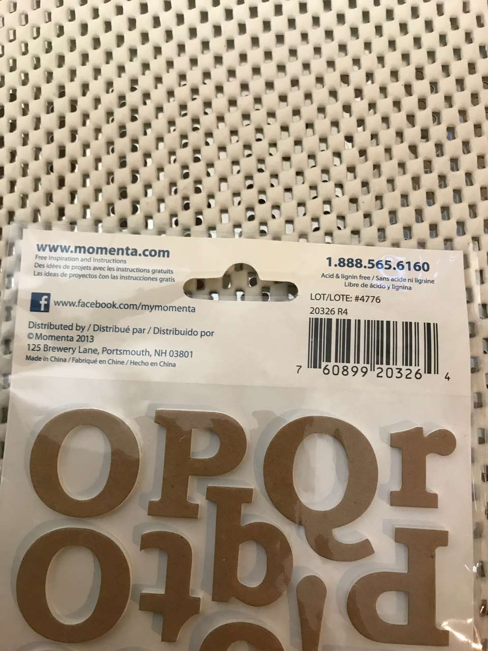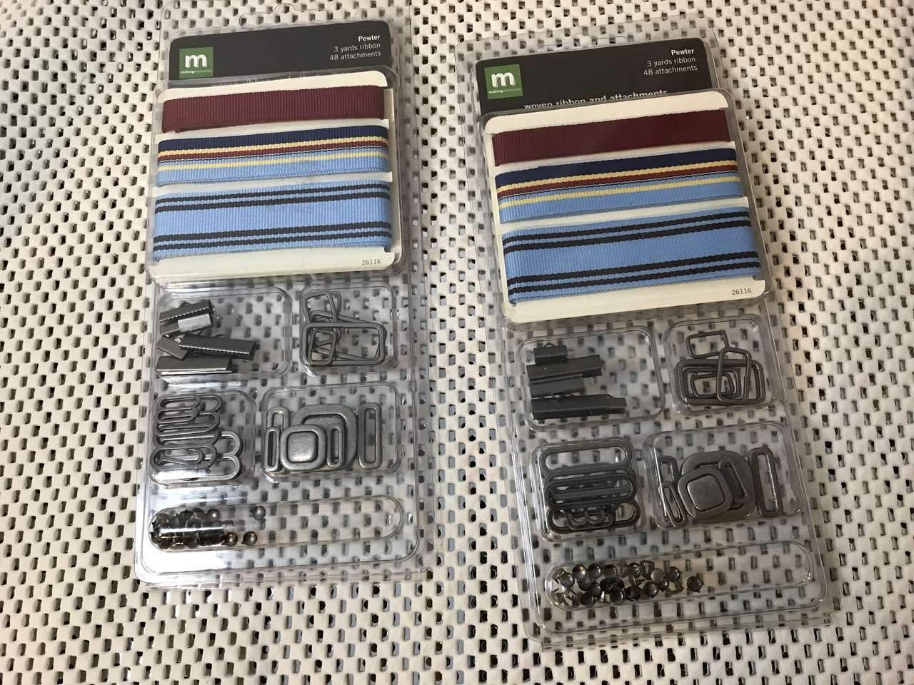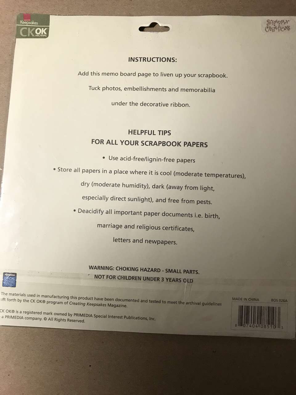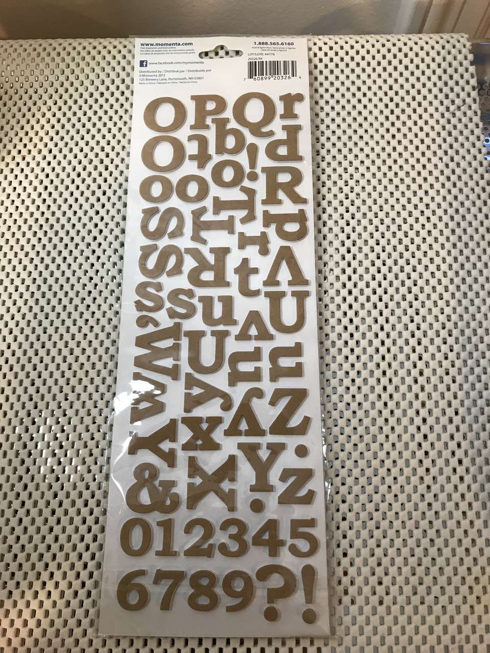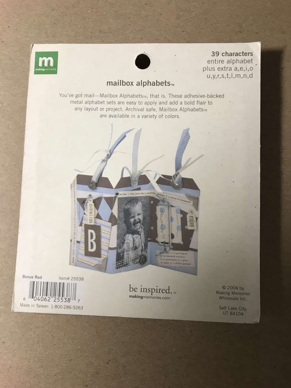 Memo Board Page 8"x8", and Paper Piecing Pattern Just a Little Something, and Rub-on letters E, H, J, W, NIP, New, 7 to 10 inches tall, and Making Memories Woven Ribbon and Attachments, New 2 pkgs. $5.00
