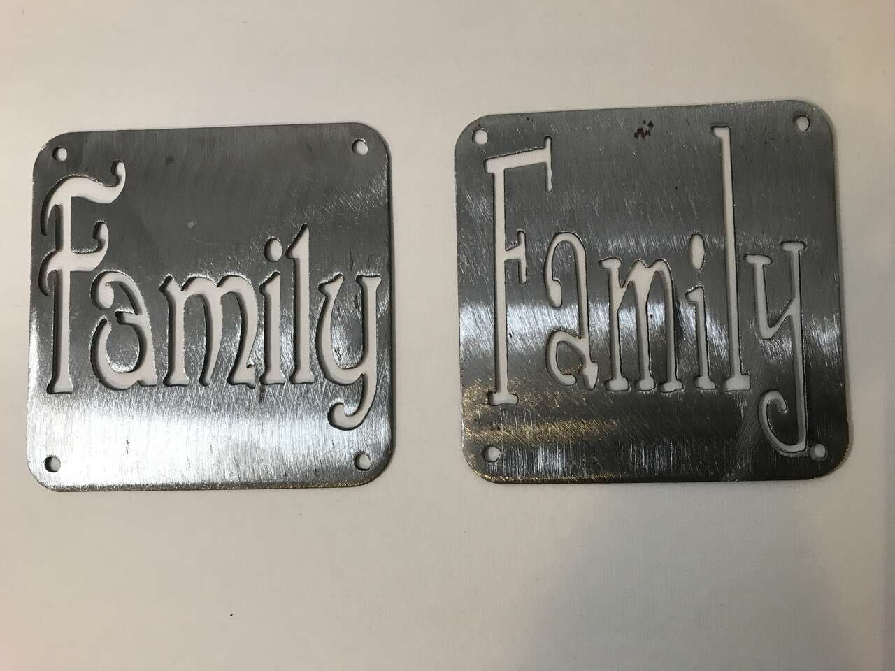 Family 4" Square Laser Cut Steel Plates 2 available, $5.00