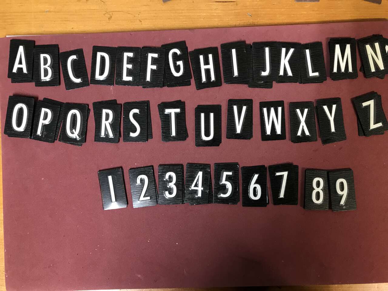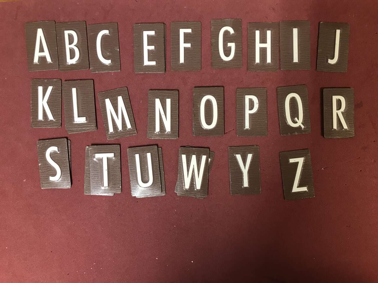Metal Alphabet Plates Black or Brown 1 5/8" x 1", Self Sticking but probably need new double stick tape. Black set is complete. Brown is not. Great for Scrapbooking or Cards. Can be used on your mailbox. $5.00