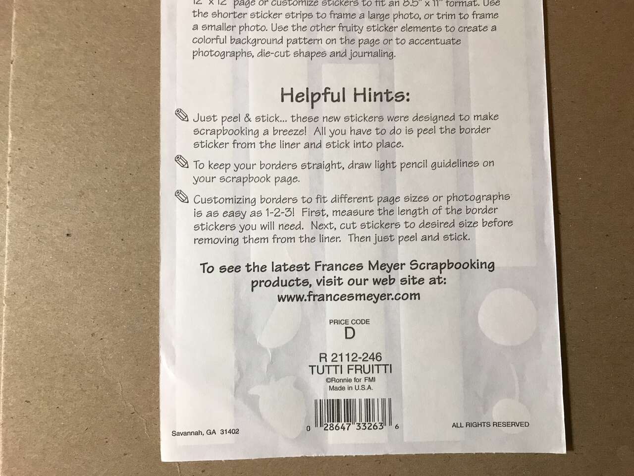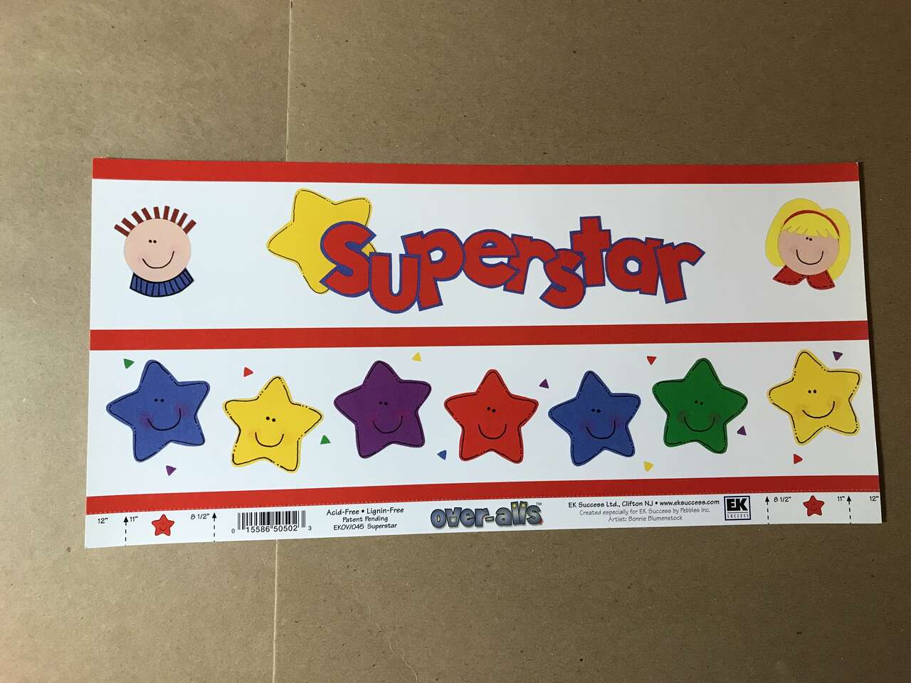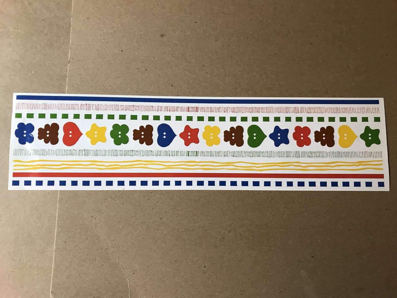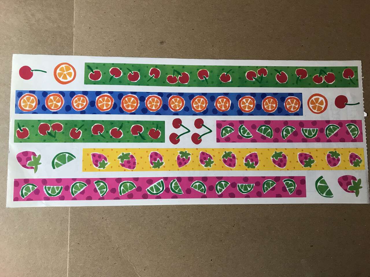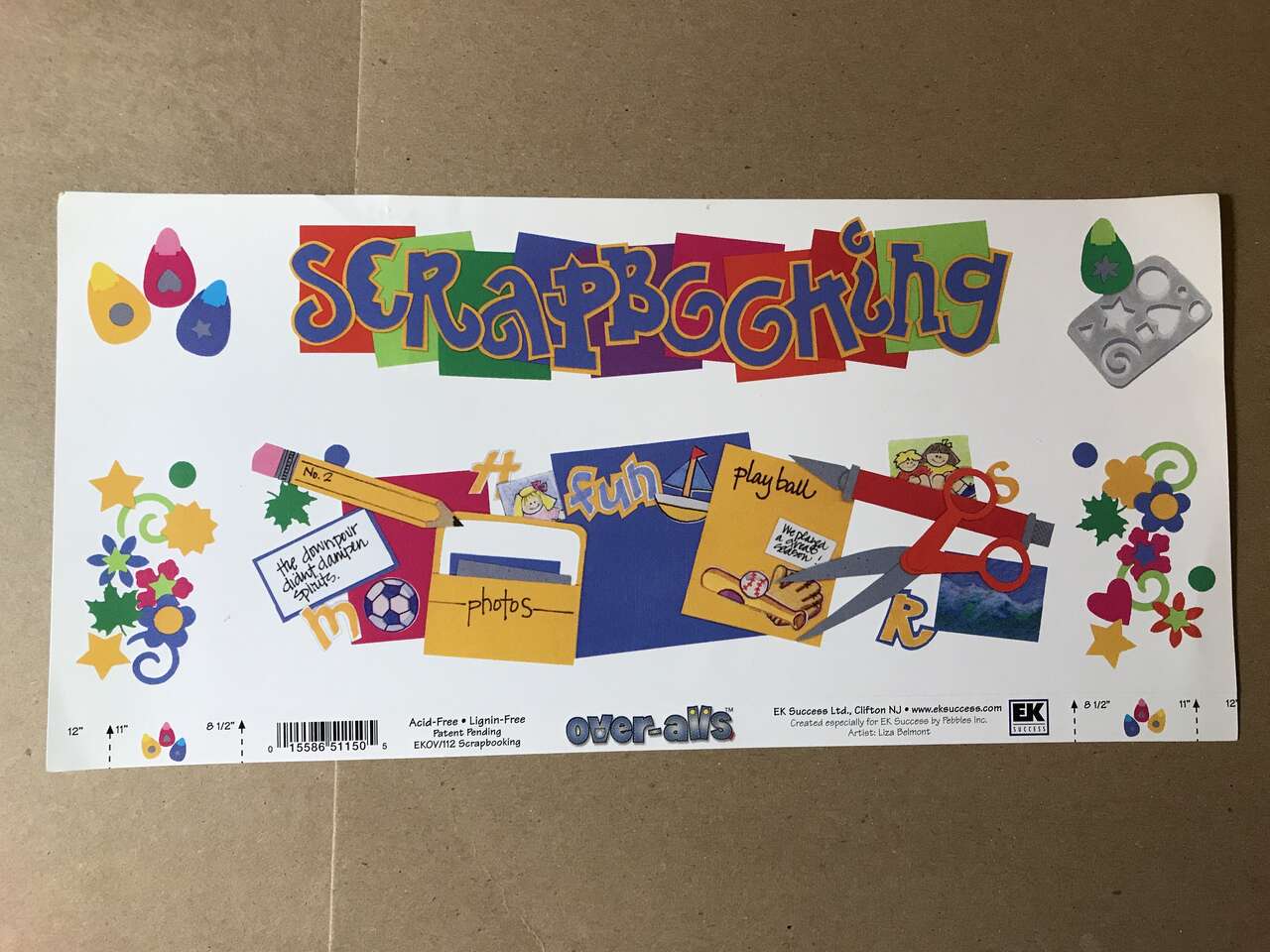 Lot of 4 EK Success Over-Alls Scrapbook Titles 12" x 5.25" + Fraces Meyer Tutti Fruitti Border Stickers 5" x 12" and Printworks Primary Burtons & Border Set 3" x 12". New, $5.00
