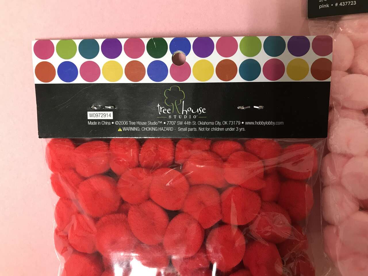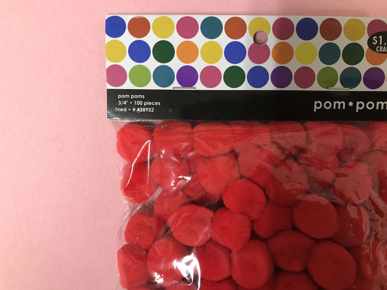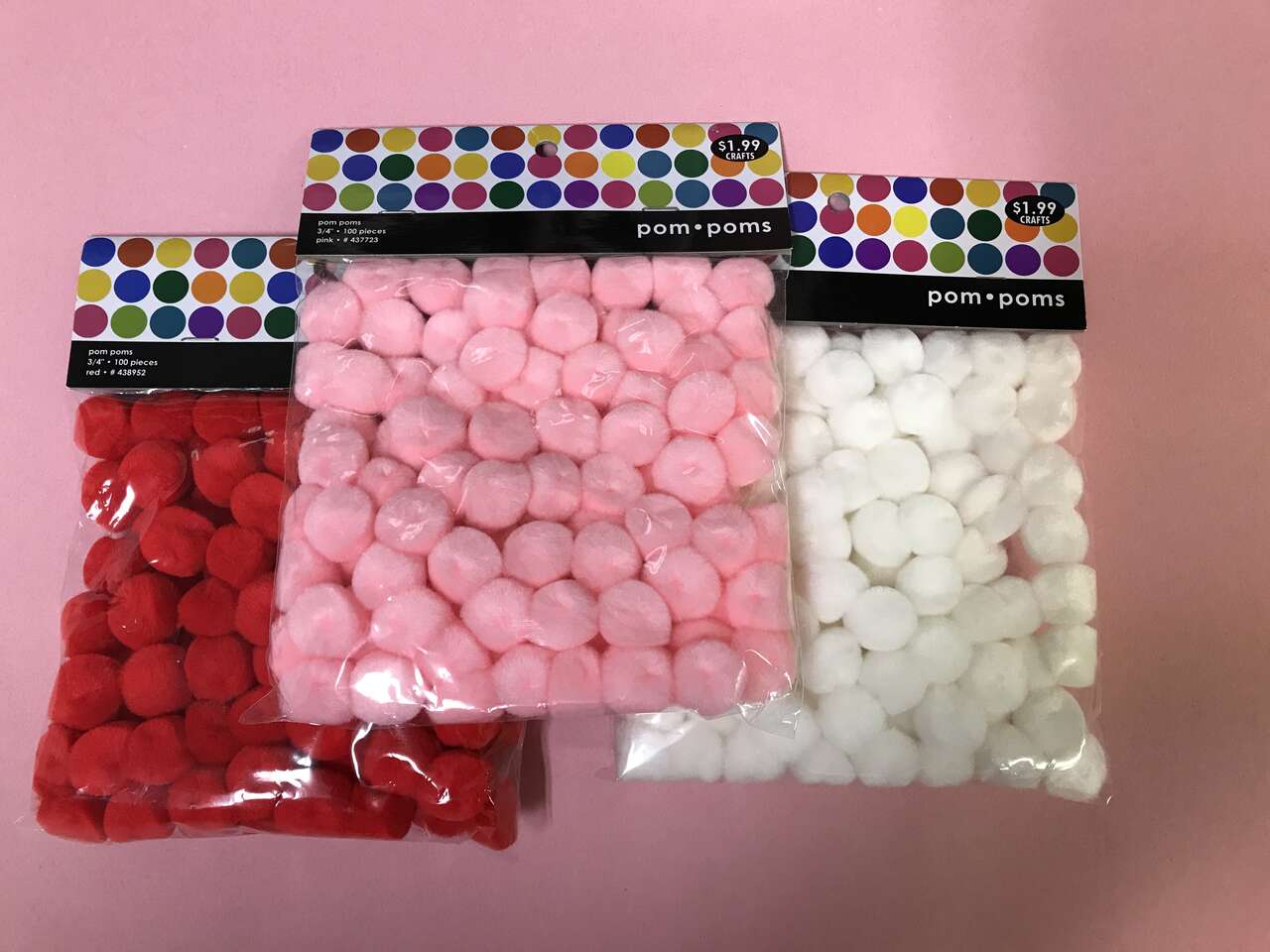 Lot of 3 Packages Pom Poms, Red, Pink and White, 100 pcs/pkg, 3/4", New, $5.00