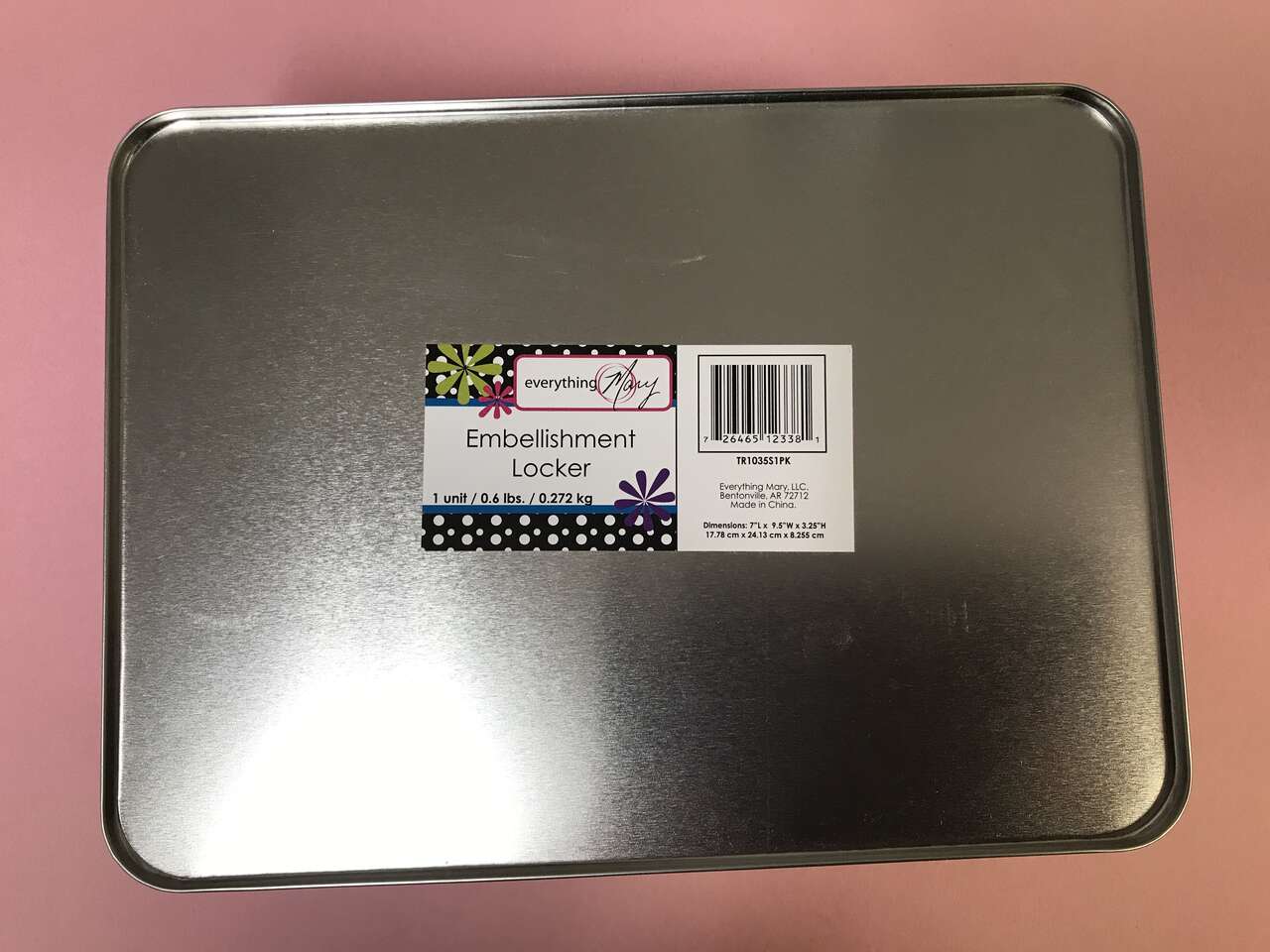 Embellishment Locker Metal Tin Rectangular Box for storing Scrapbooking, Photos, Craft goodies or Barbie trinkets. Has a removable lid. Measures 3.25" high x 7" wide x 9.875" long. Features a metal label holder. New. $5.00