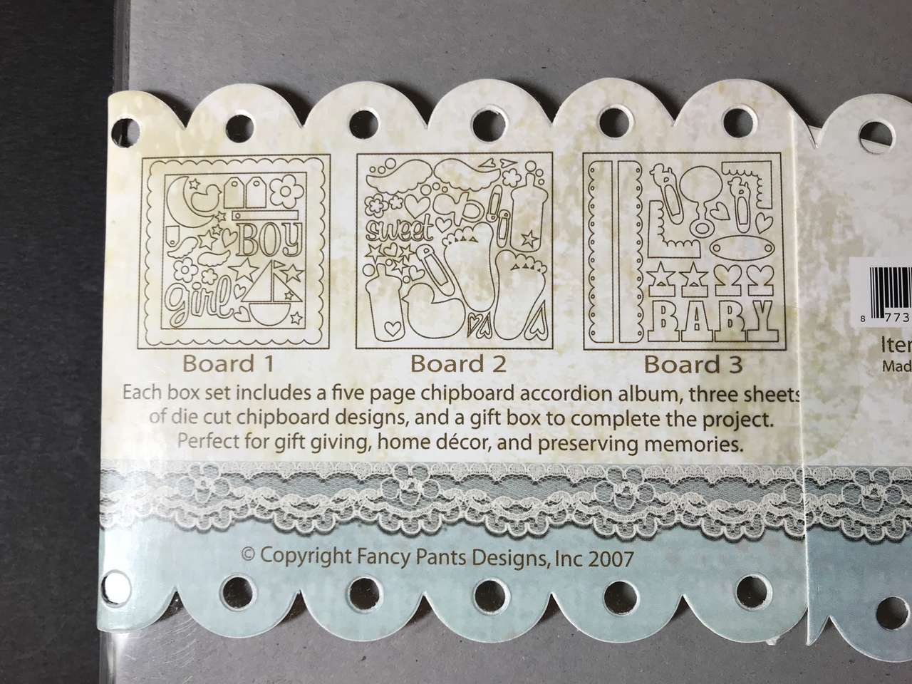 Scrapbook Chipboard Box Sets By Fancy Pants Designs Baby Steps Girl & Boy New. Comes from a smoke and pet free home.