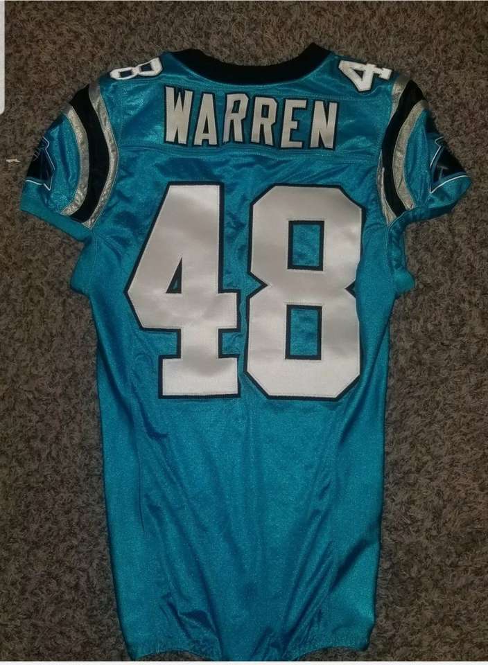 Official game issued Carolina Panthers Jersey #48 Michael Warren RB. You are looking at a carolina panthers jersey year/size tagged 09-46 as pictured,this is an awesome looking jersey to go to the panthers games in or to tailgate in,i will accept any reasonable offers on any of my items up for sale,if u have any questions about this item or any of my other items up for sale please feel free to contact me anytime. Thanks. Get thesegreatlooking items while they last.