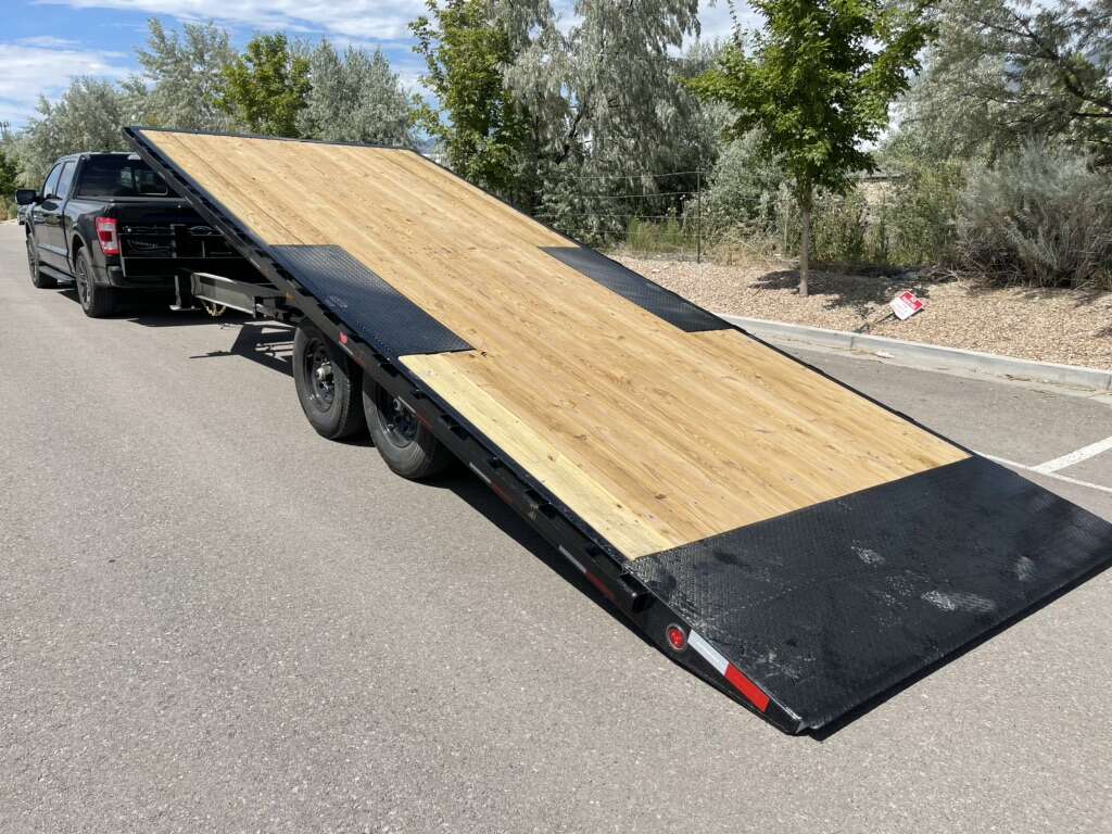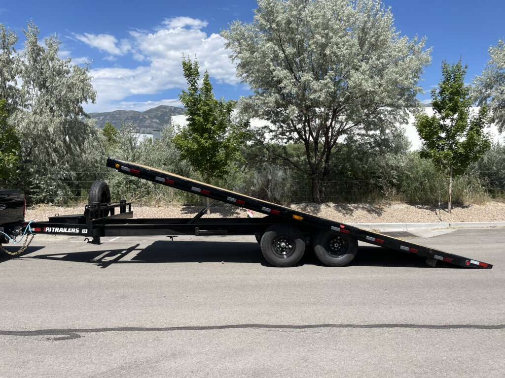 Up for rent is my brand new PJ T8 Deckover Tilt Deck Trailer. It’s 22’ x 8’6” wide and the deck only sits 32” above the ground