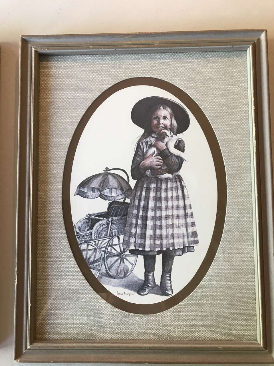 Joanne Thompson 1 Girl and 1 Boy Framed Prints 17 1/2” x 13”, Signed