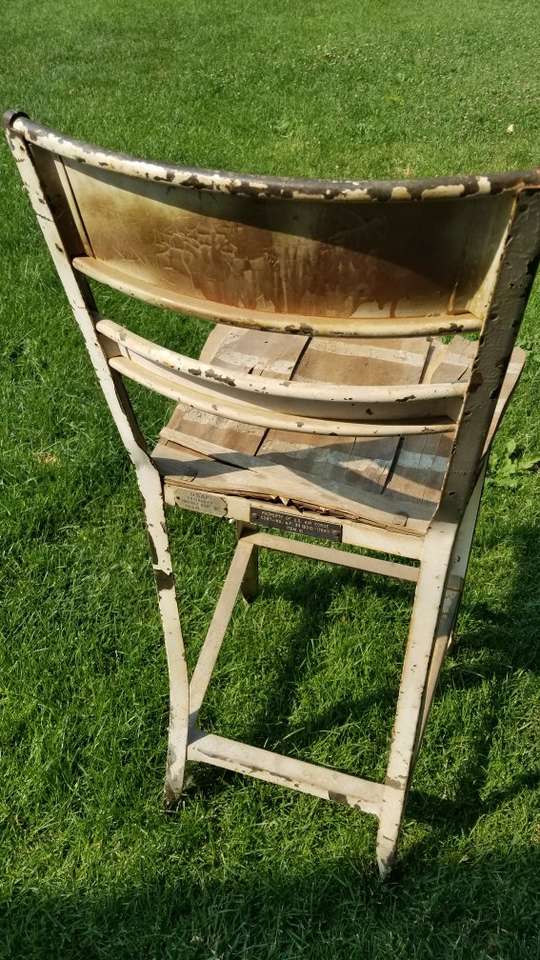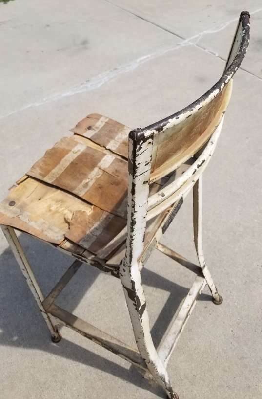 1967 vintage heavy duty chair. Seat is showing it's age...however can be replaced. Was purchased from the base. 60 years old. Has the patina of paint that long ago. Very solid. $40.00 pick up in Ogden.