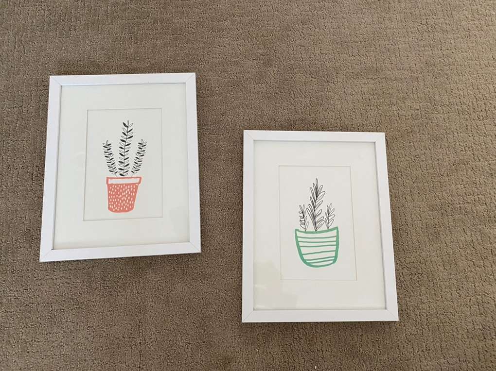 Two prints of potted plants. Great for any room. Measurements are in photos.