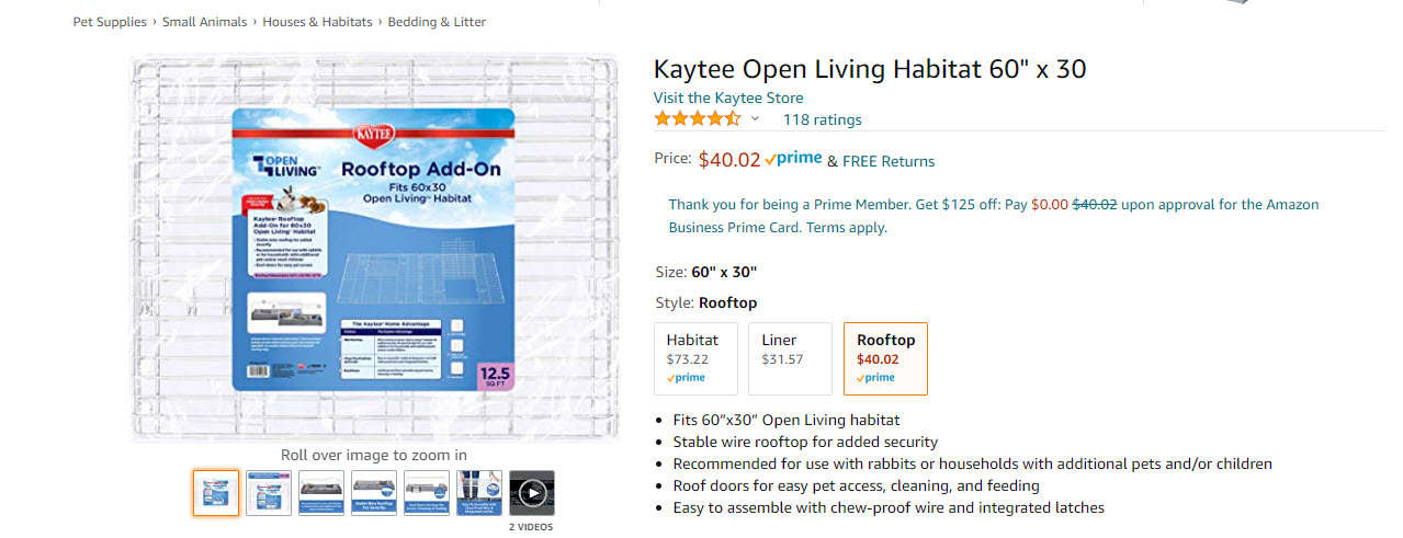 Kaytee Open Living Habitat Rooftop Add-on 60" X 30"