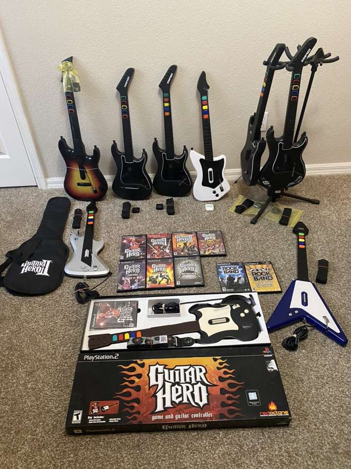 PlayStation 2 guitars and games for sale, all in excellent condition! All come with guitar strap, all buttons and strummers are working perfectly. These guitars work on all guitar Hero and Rockband games (Rockband has same format as guitar hero, drums and microphone not required to play)