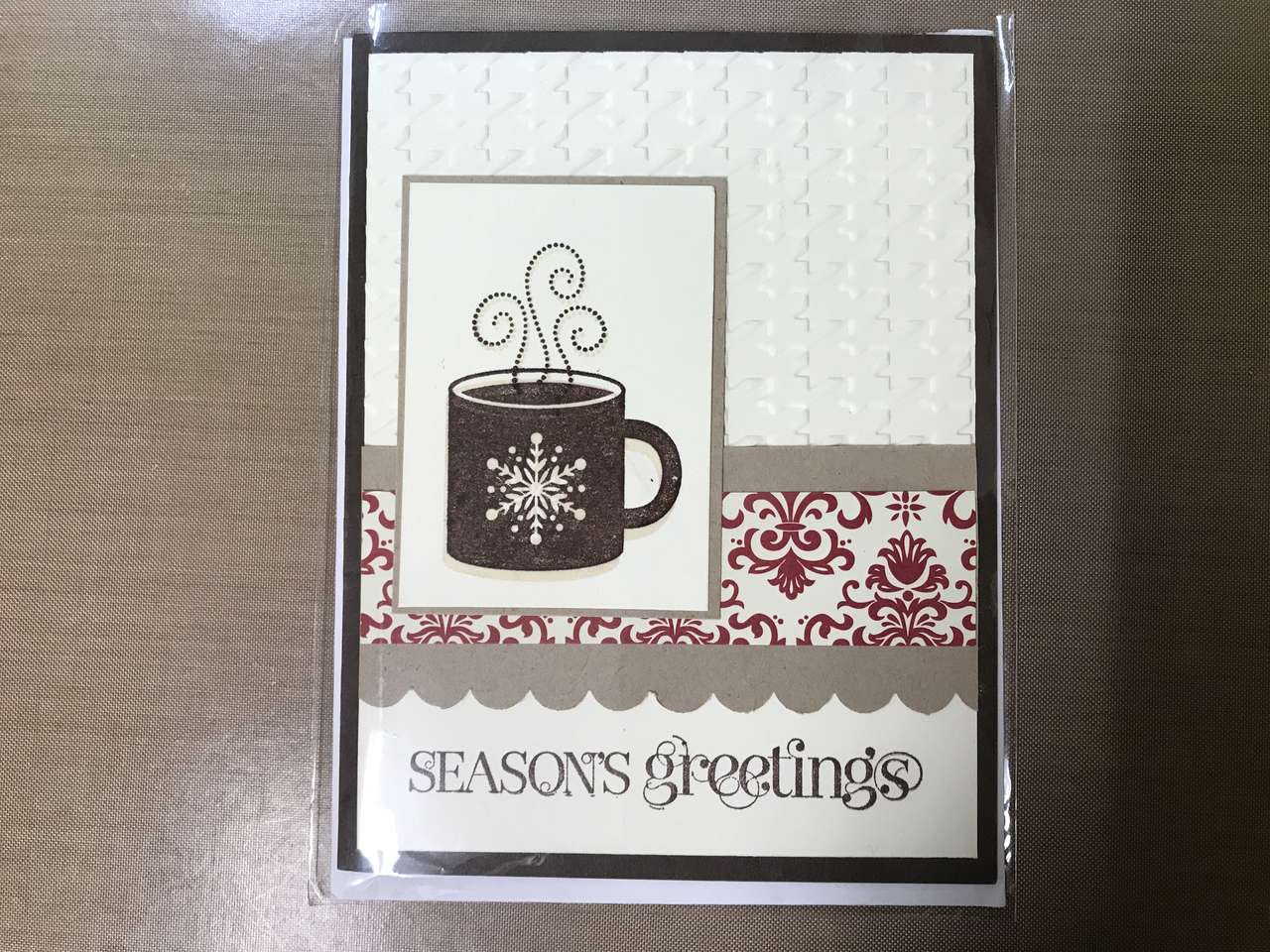 Each Card comes with an envelope sealed inside a cellophane protective envelope. Cards are 4 1/4" x 5 1/2". The last 6 cards are a different size. Cards are made using Stampin Up, Close to My Heart, Concord & 9th stamps and many other brands. Some of the cards are dark blue in color but look black in the pictures. If you have any questions on the color or colors, please ask.