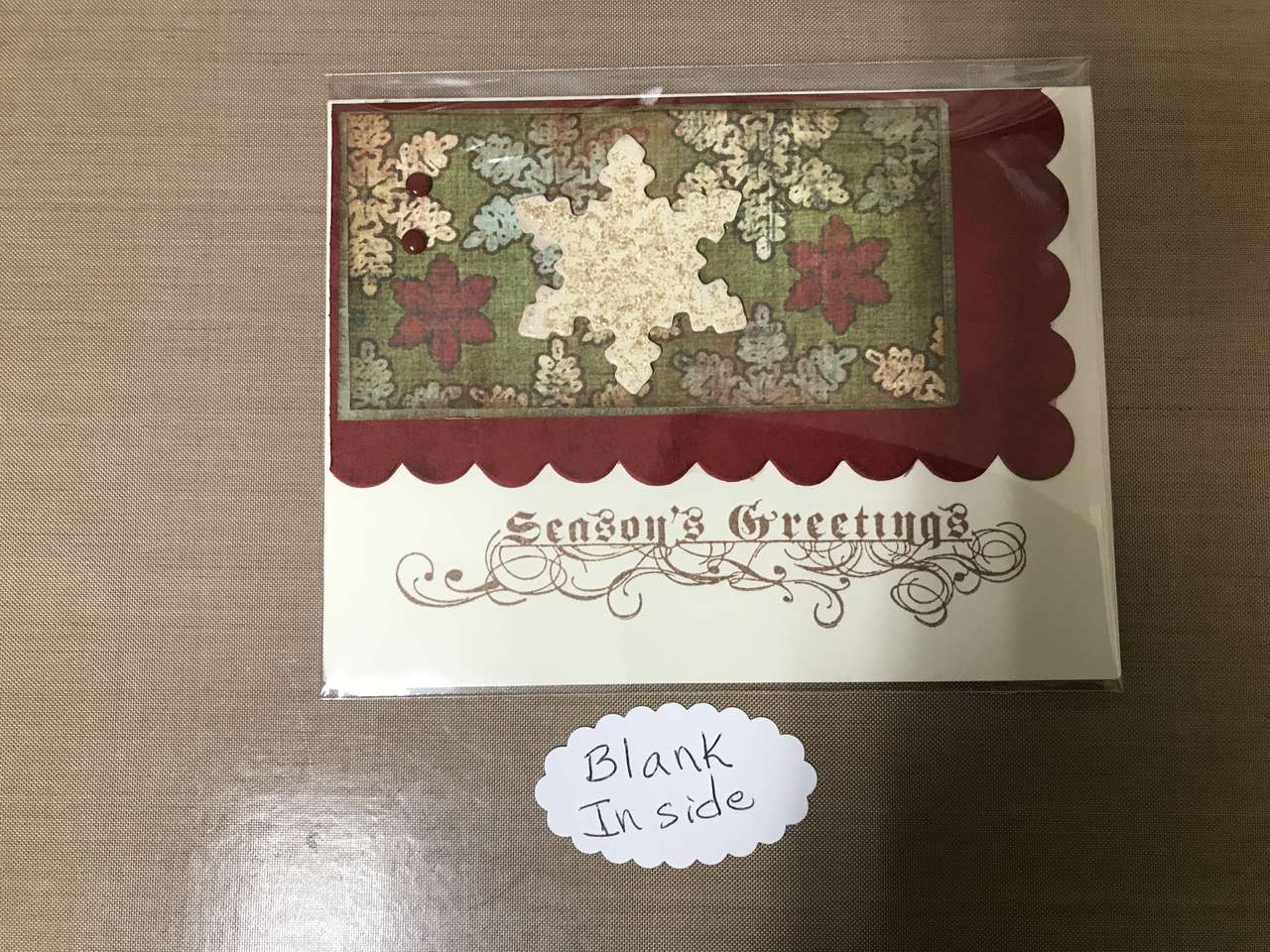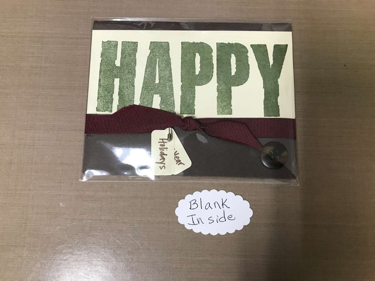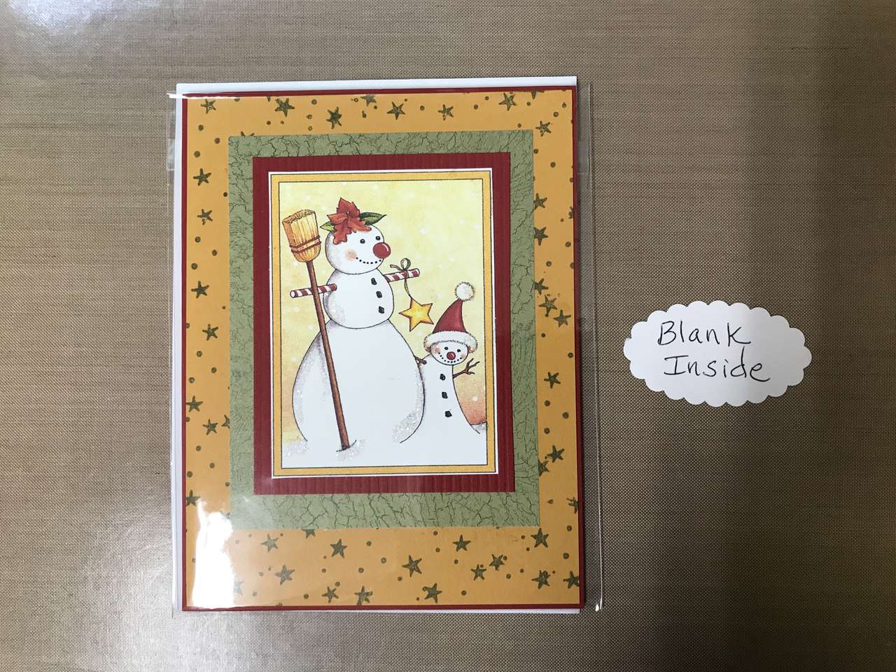 Some of the cards are blank inside. I have taken a picture of the saying inside the cards that are not blank. All cards are handmade from new materials and may be slightly different if you purchase more than 1 of the same card. I can make more of most of the cards, just let me know.