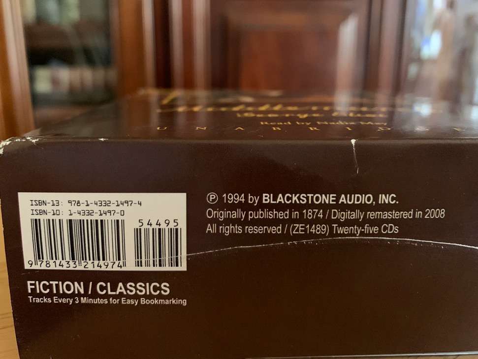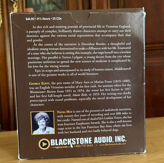 VenmoMiddlemarch unabridged By “George Eliot” Audiobook read by Nadia May who read 600+ Titles On 25 CDs. Send me a message if you’re interested.