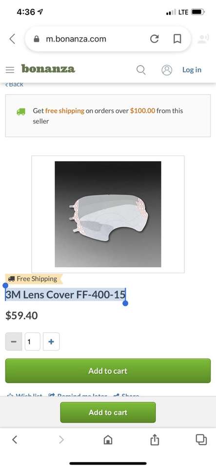 Standard lens covers for use with 3M Ultimate FX Full Facepiece Reusable Respirators FF-401, 402 and 403. Works great to keep your mask clear while spraying large projects A lot cheaper than replacing a high dollar full face respirator every time it gets too much overspray on it. Pkg is brand new, never opened