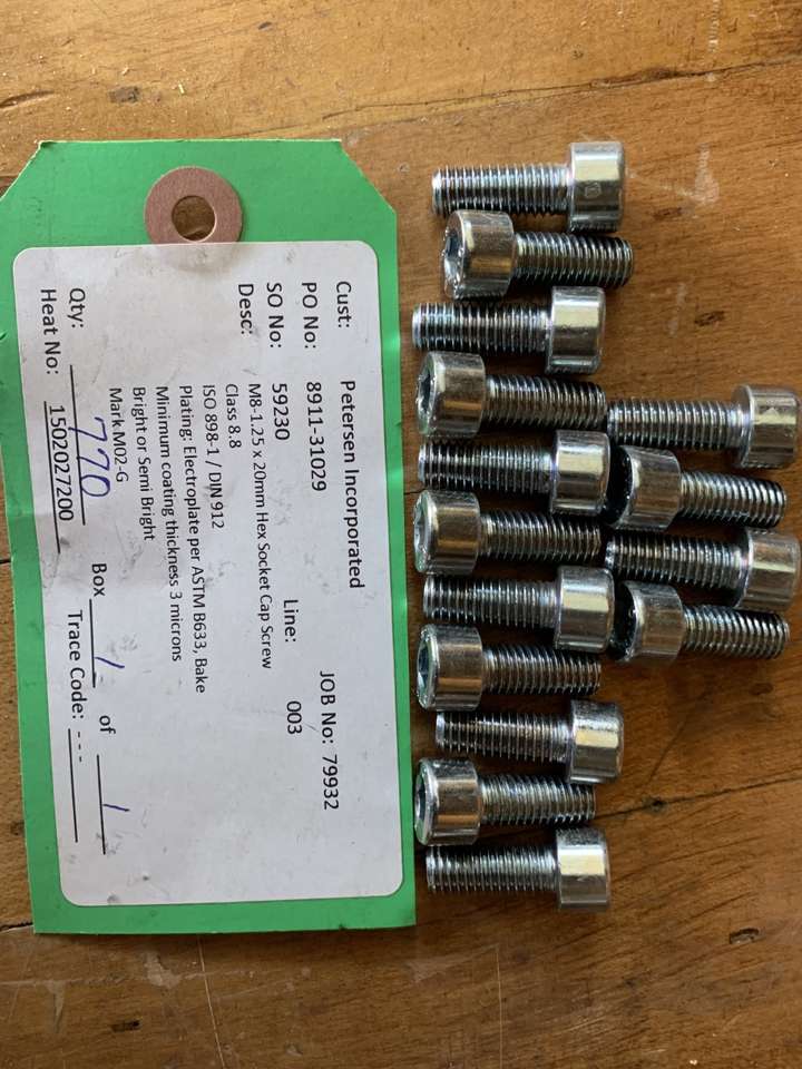 between 6000 and 7000 metric bolts new M8-1.25x20mm hex socket cap srew these are new bolts never used to purchase new they are about $8 for 20 bolts I am open to offers please call Pete at 801-721-0674 thanks