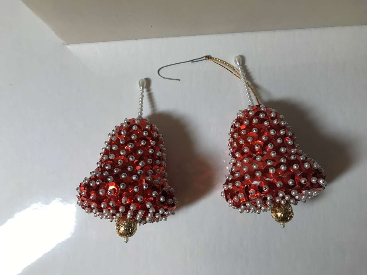 Plastic Heavy Duty Clear Diamond Design Ornament, and Vintage 2 Styrofoam Jeweled Sequin Christmas Tree Ornaments Bell Shaped with red sequins, Handmade, $10.00