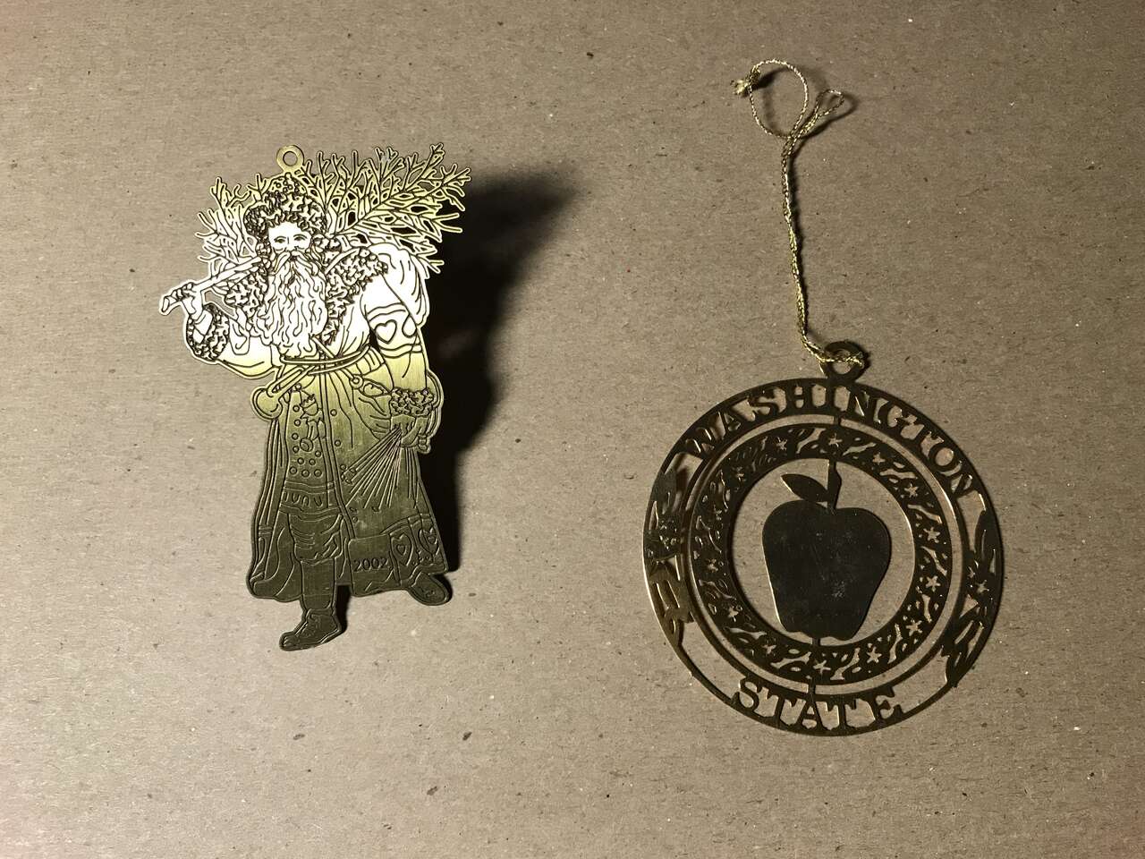 2 - 24K Gold Brass Ornaments, Santa And Reindeer 24K Gold Finish Brass, 24K Goldtone Candy Cane $10.00