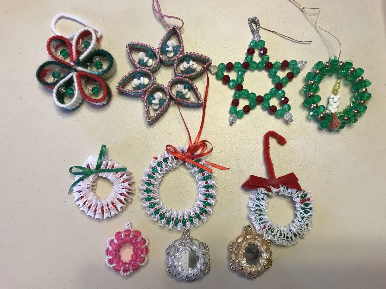 Pictures 2-11 and very last picture of red and green candy cane, Beaded Ornaments, Handmade. 10 for $10.00