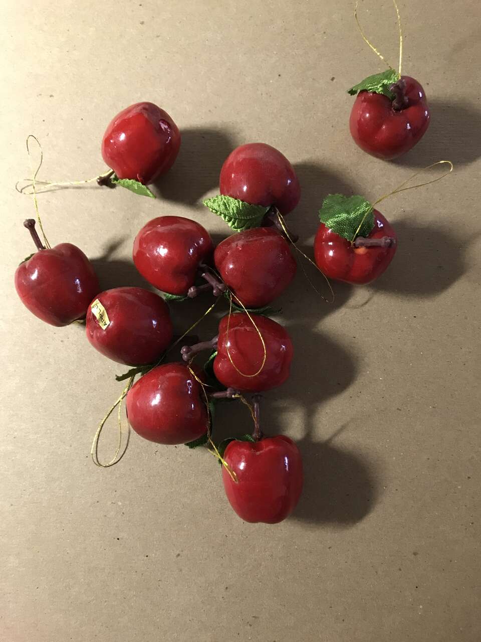 Vintage Miniature Red Apple Ornaments with Green Leaf and Gold Thread Hanger Set of 11. and 6.5" Bird House Ornament with Hanger by Deigner's Excellence, $10.00