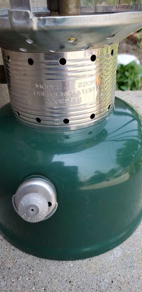Coleman Model 220F 03/1965 lantern. Good condition with a few chips and an original Pyrex glass. I have not fired this lantern but it appears to be in good working order. Comes with an original red Coleman plastic case but not of the same time period. See photos for more details about this item. $65.00 for the set.