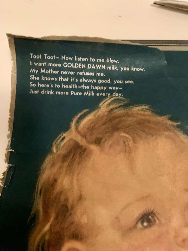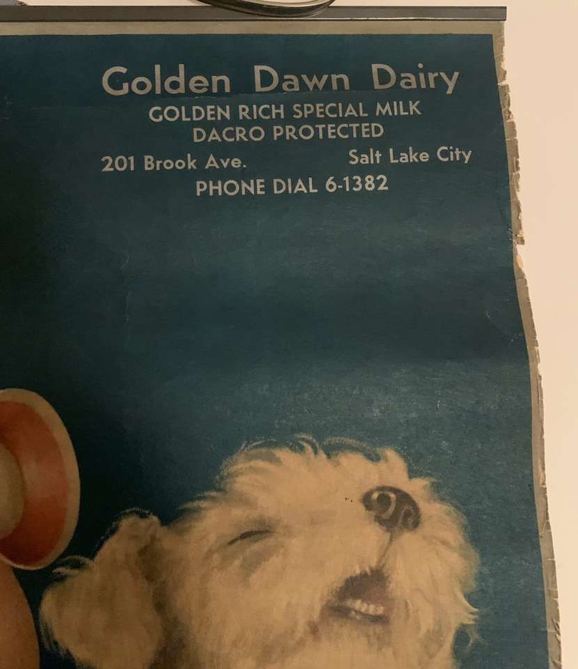 Vintage local Dairy commercial Calendar Graphic By Charlotte Becker. Calendar has metal strips at top and bottom. Condition is Vintage with a tear on top right under the metal bar, rubbing yellowing, foxing and a stain on the back. Please Look at all the pictures Message me if you’re interested.